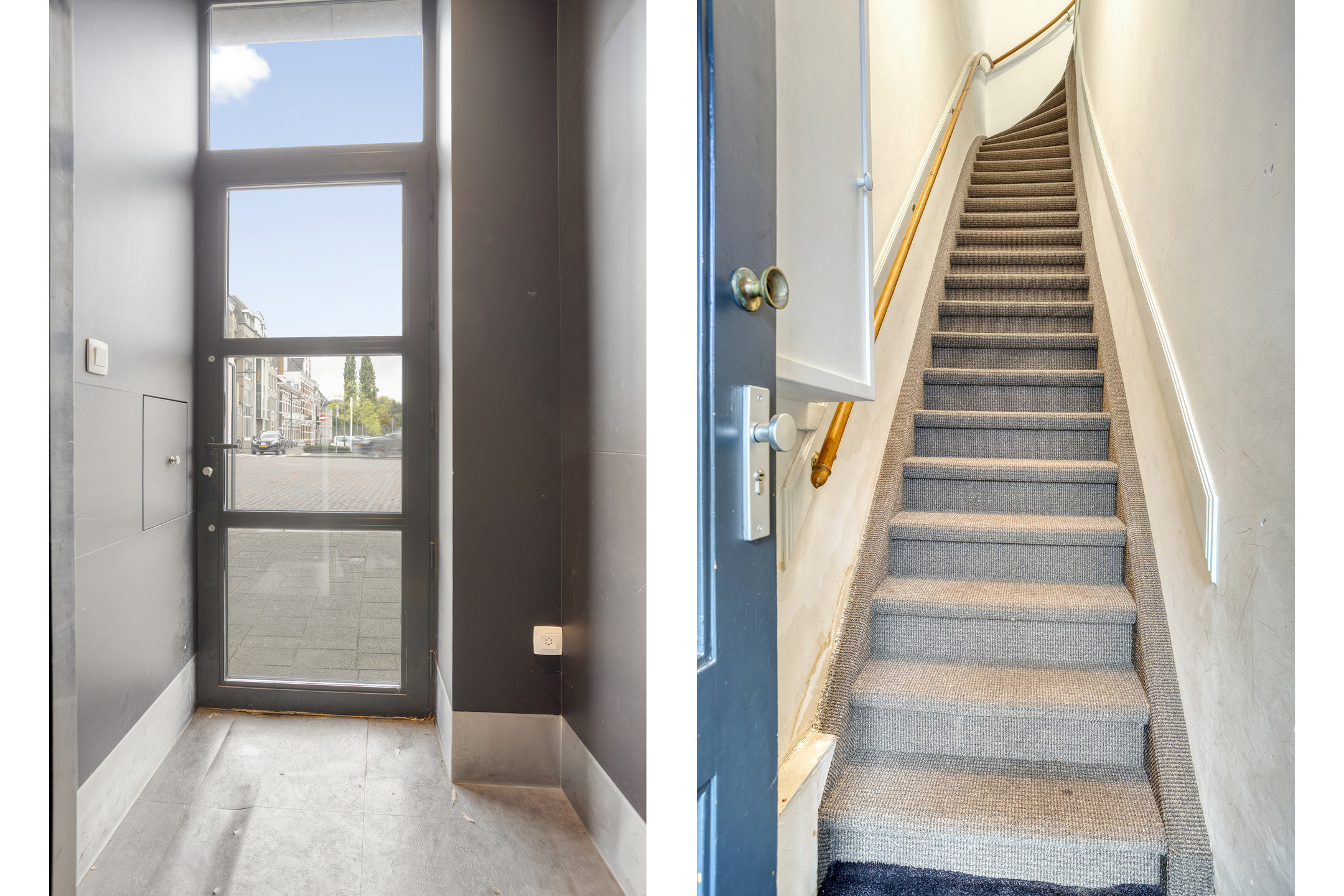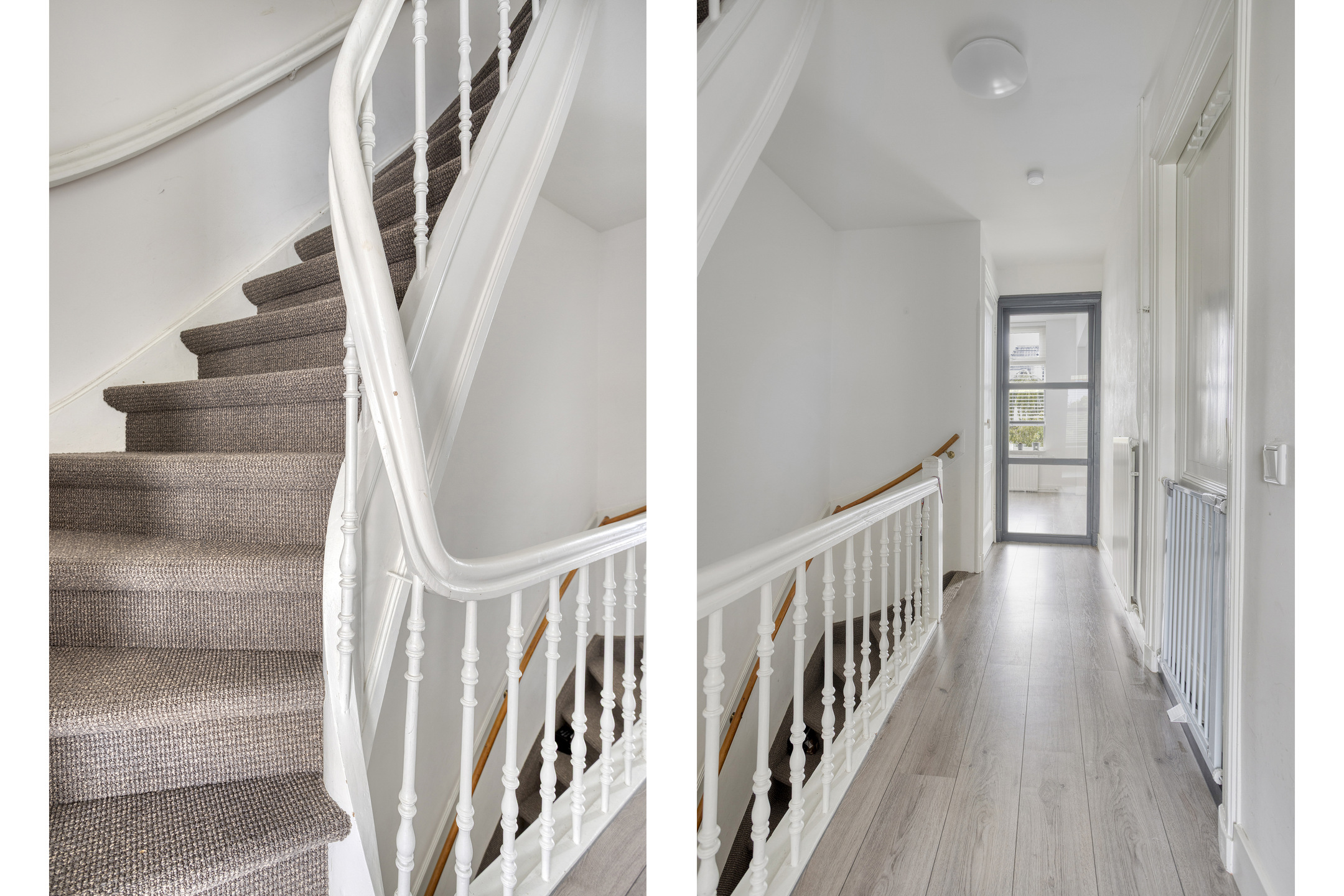 Entree hal, met dubbele toegangsdeur en trapopgang , de meterkast, vernieuwd in 2018, (6 groepen, 2 aardlekschakelaars, digitale dag- en nachtstroom tariefmeter, digitale gasmeter en watermeter).