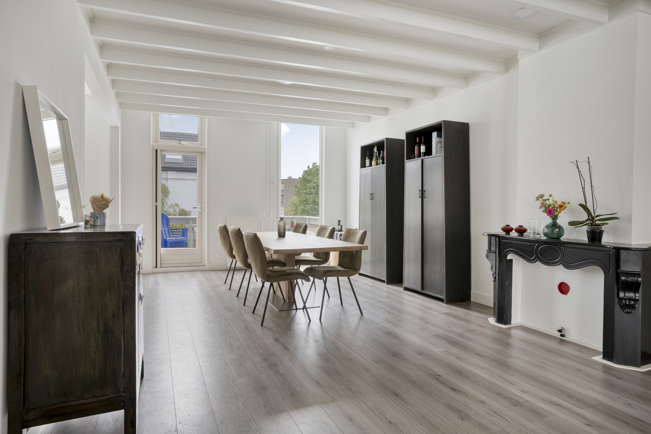 In een karakteristiek pand, boven de exclusieve chocolaterie Smits’, ligt dit luxe appartement/bovenwoning van ca. 146 m2 met balkons op het zuidwesten op zowel de 1e als 2e verdieping. Het appartement beschikt over een woonkamer van ca. 70 m2 met open keuken, hier ervaar je een heerlijk ruimtelijk gevoel door de hoge plafonds. Op de 2e verdieping zijn er 3 slaapkamers, waarvan de master een balkon heeft met uitzicht over de Baronielaan. Verder is hier de badkamer met douche, ligbad en wastafel en is er op de overloop een apart toilet. Boven de 2e verdieping is een bergzolder welke via een vlizotrap te bereiken is.