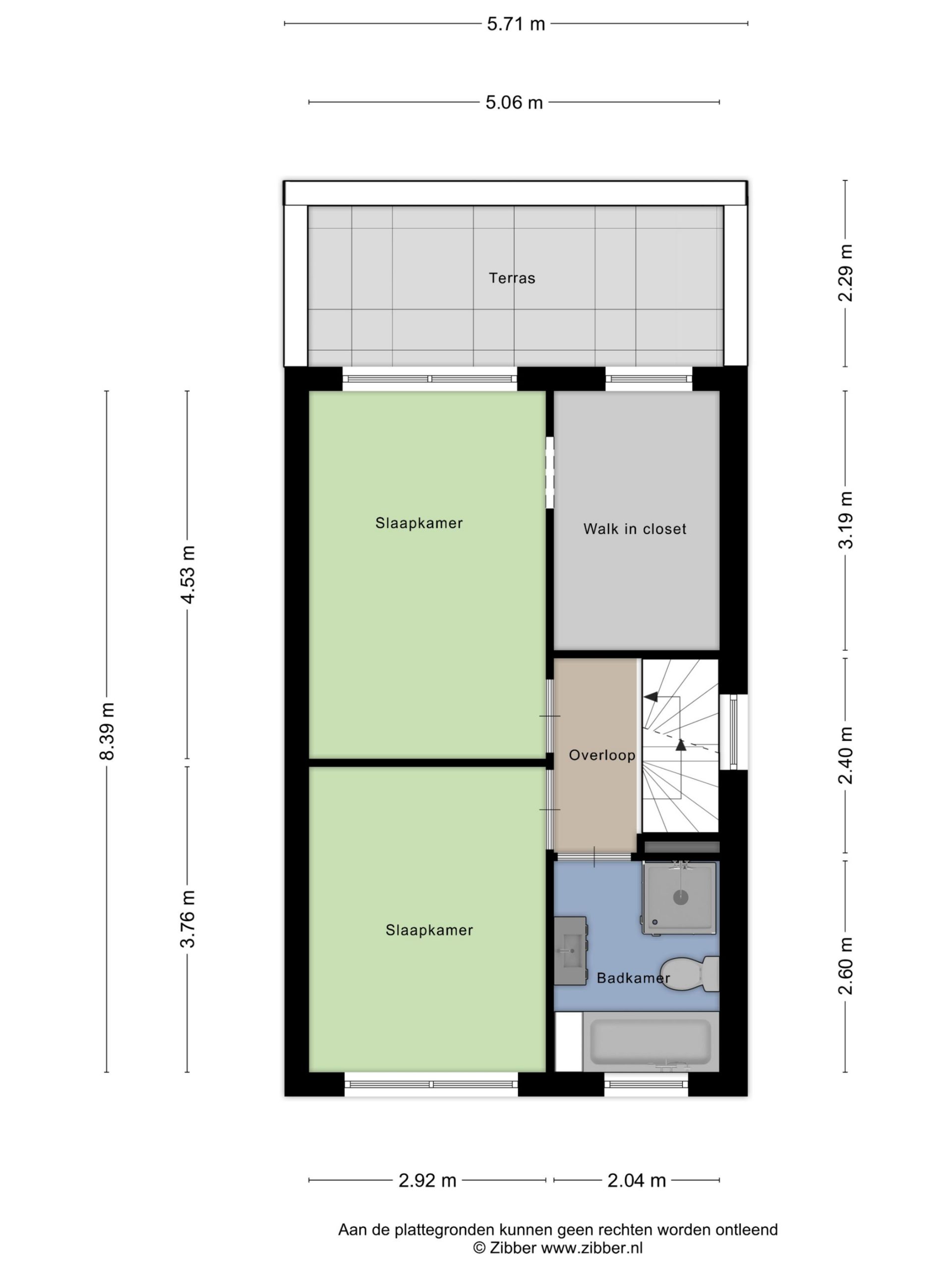 Slaapkamer 1 (ca. 4.53 x 2.92 m groot) met “walk-in-closet” (ca. 3.19 x 2.04 m groot) is aan de achterzijde van de woning gelegen.
