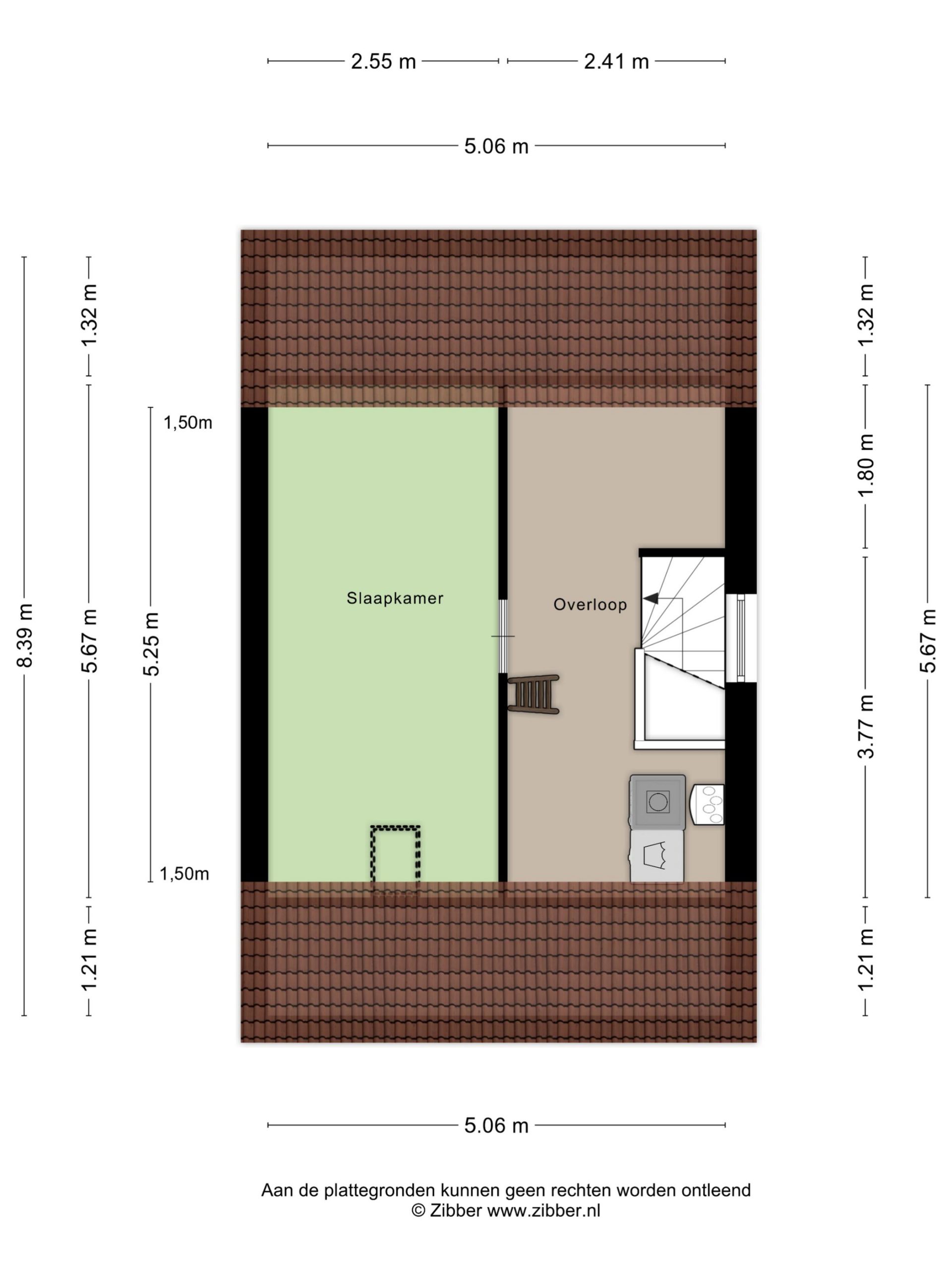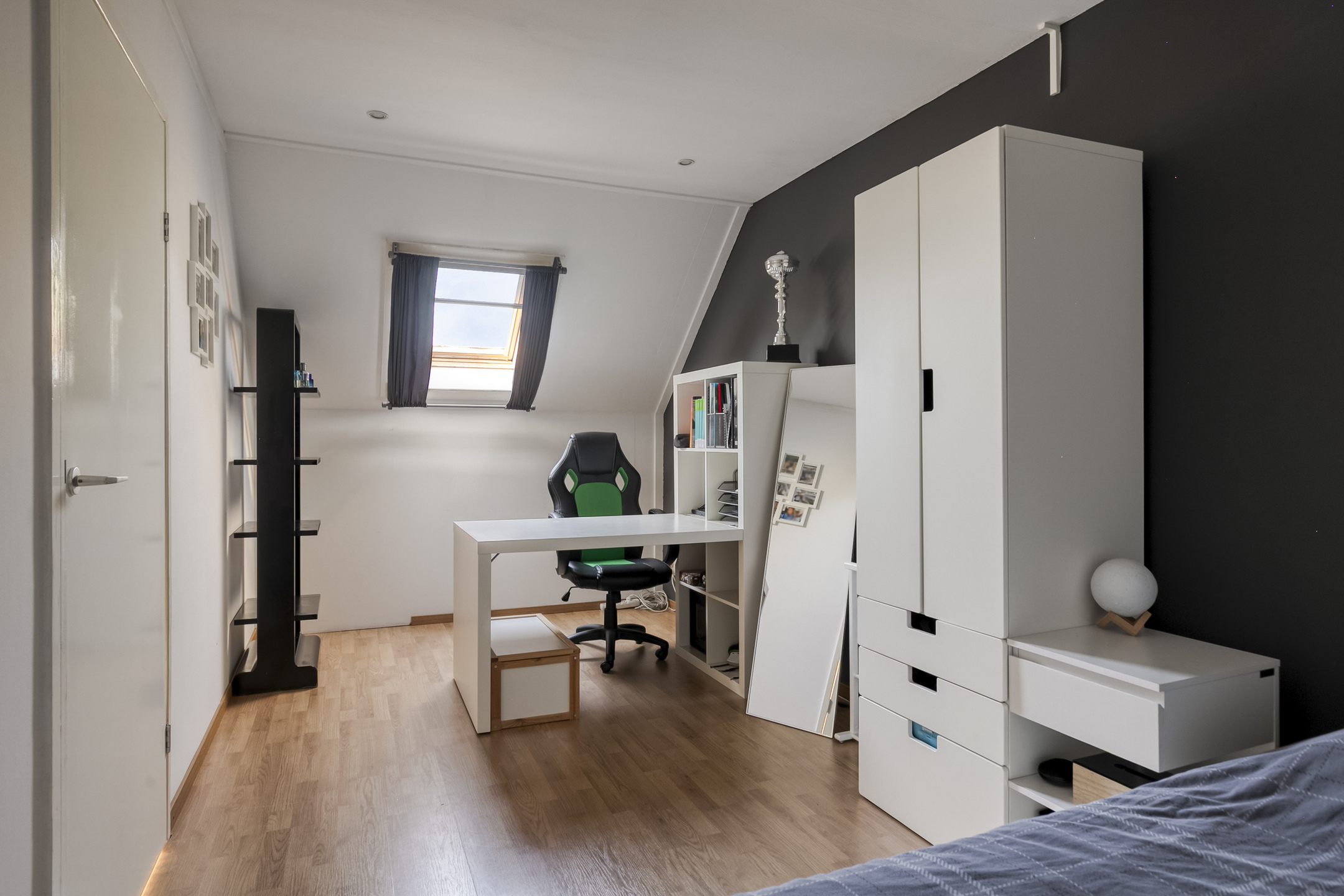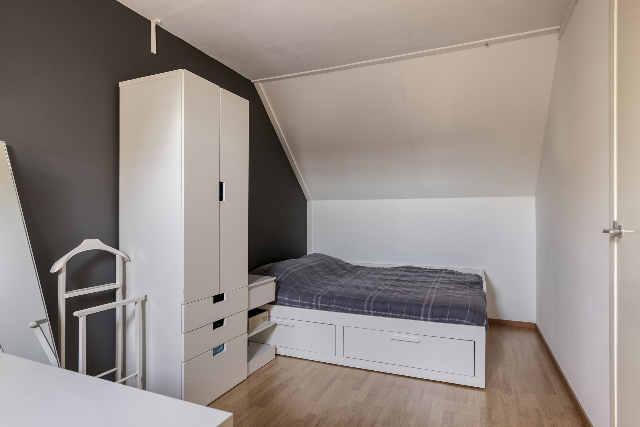 Vanuit de voorzolder is de 3e slaapkamer bereikbaar (ca. 5.25 x 2.55 m groot). De vloer is hier tevens voorzien van een laminaat. Boven deze slaapkamer is nog een extra vliering te bereiken.