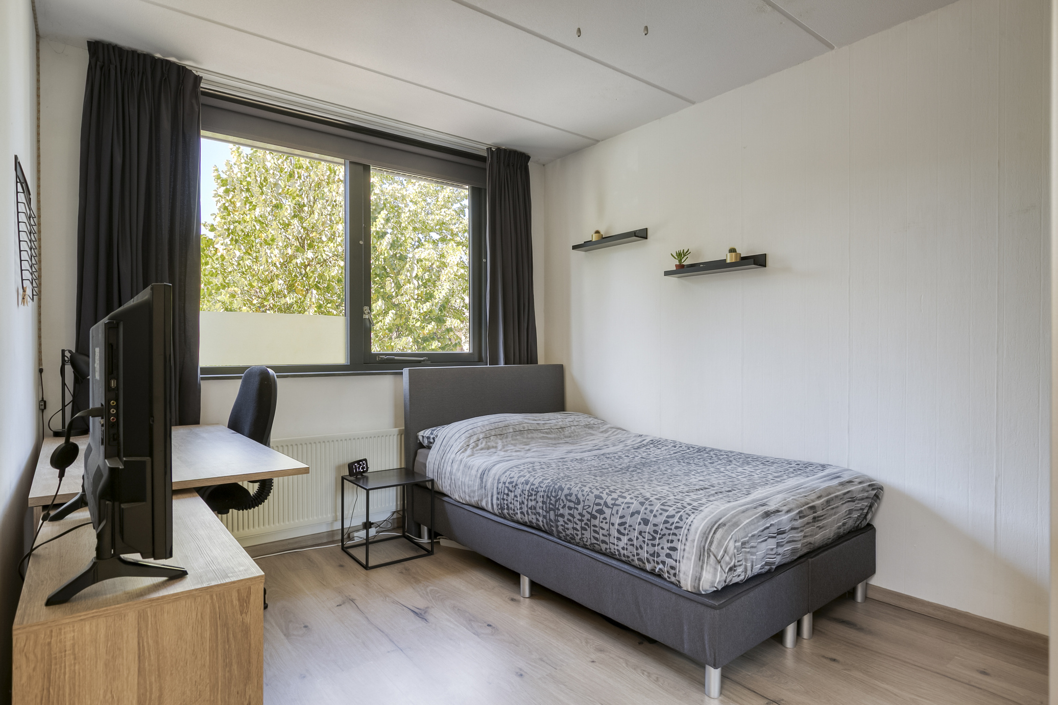 Slaapkamer 2 (ca. 2.92 x 3.76 m groot) is aan de voorzijde van de woning gelegen. De vloer van beide slaapkamers is voorzien van laminaat.