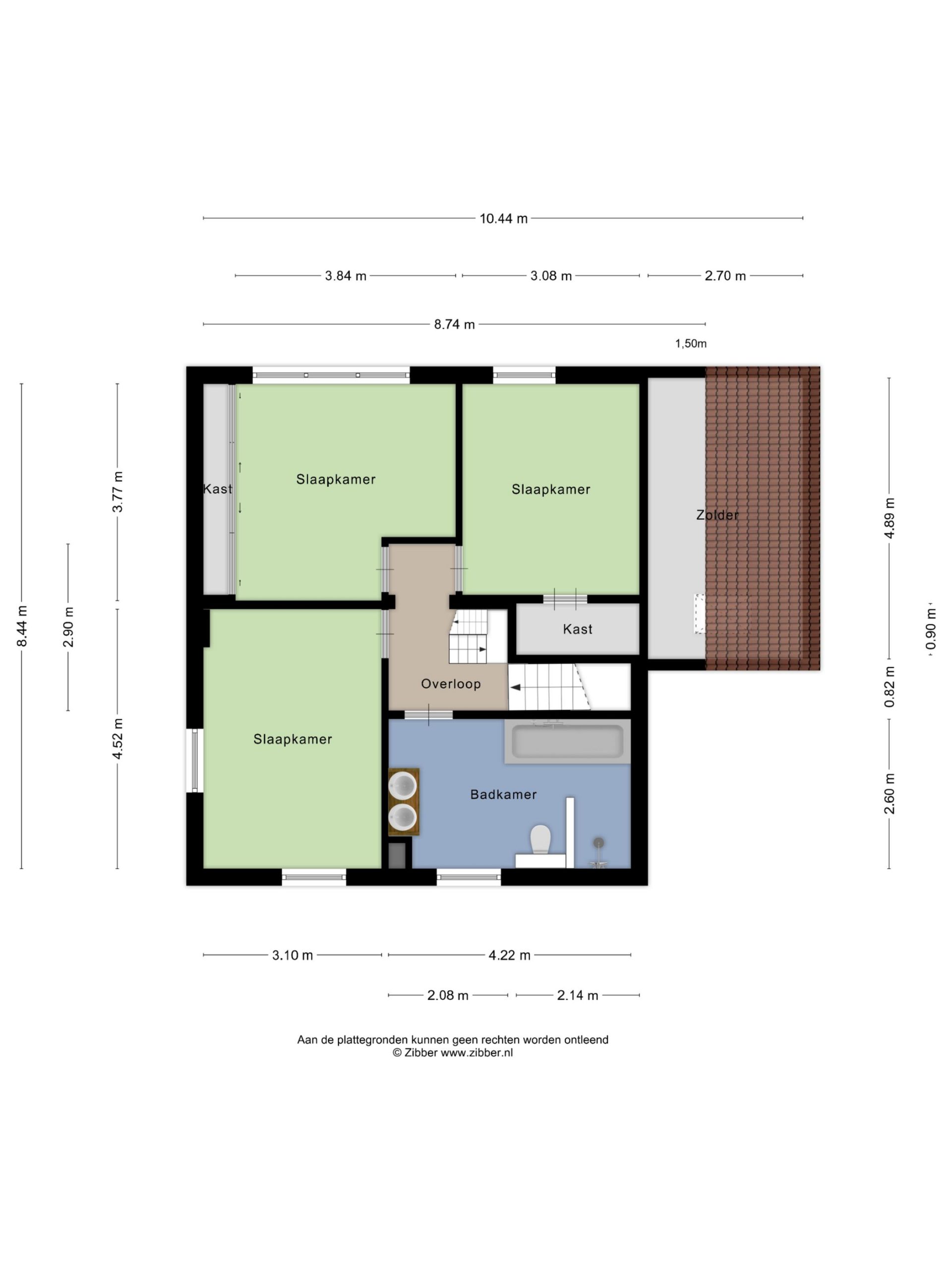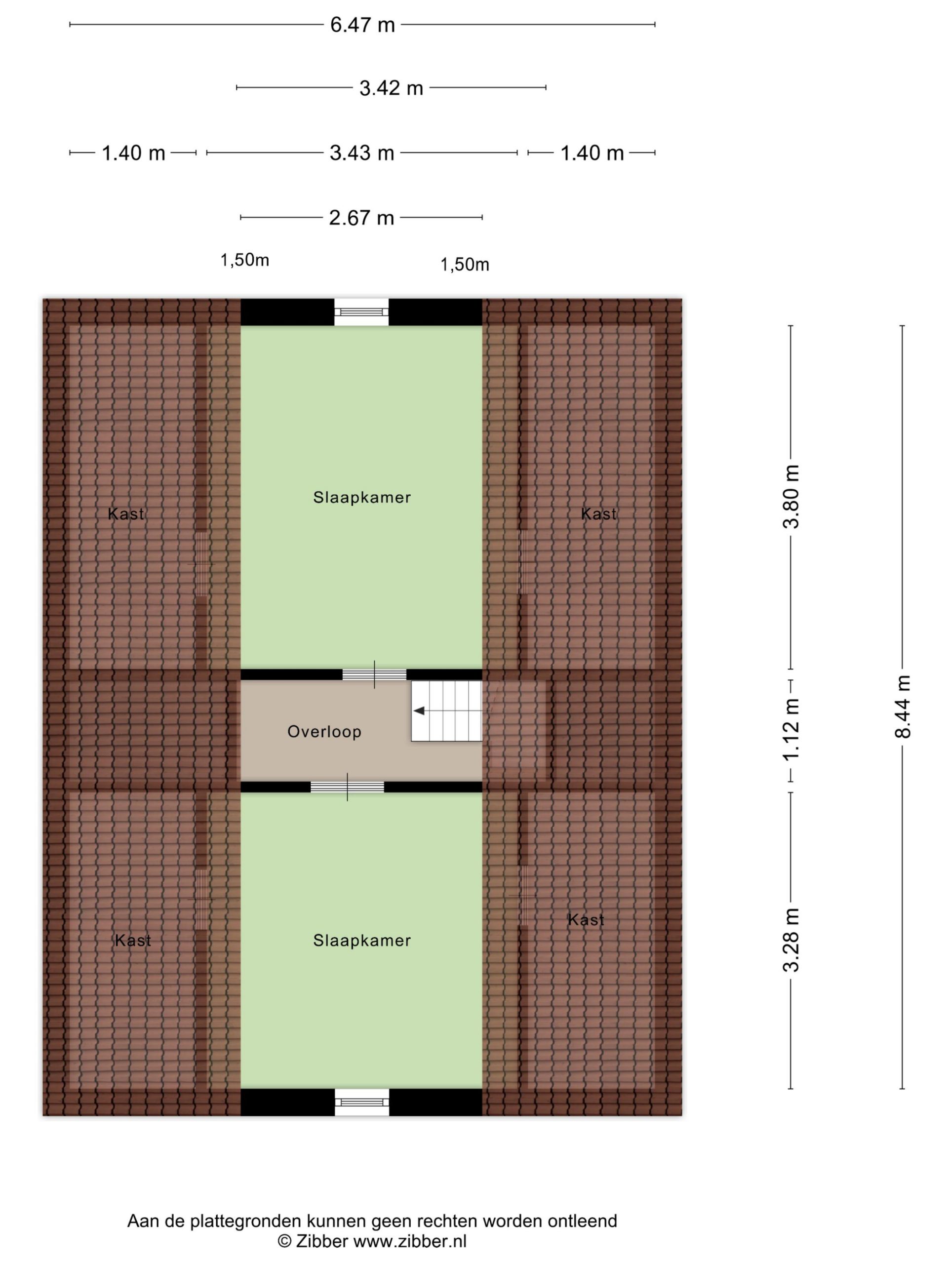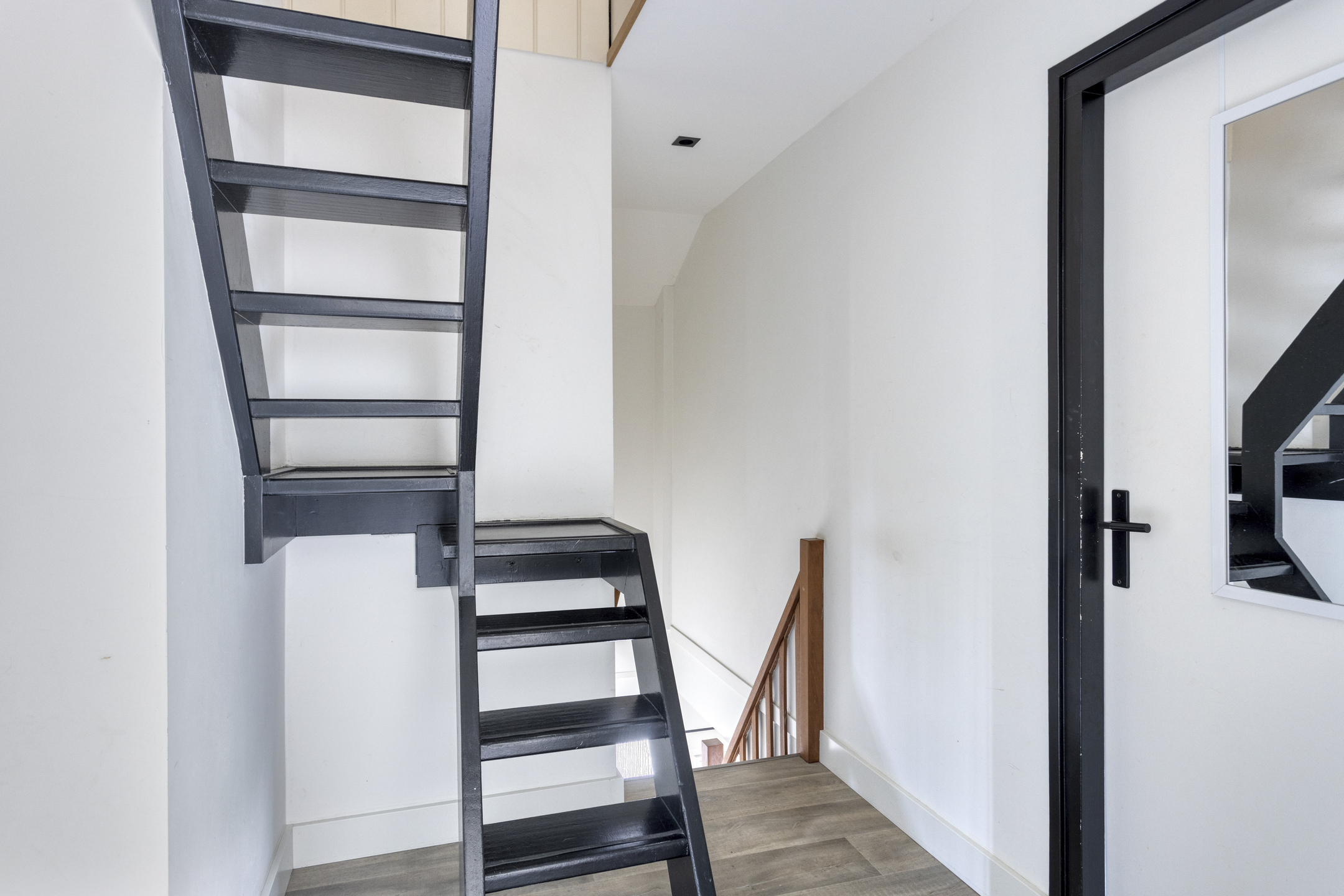 De tweede verdieping is bereikbaar via een vaste trap. Hier zijn nog 2 extra slaapkamers te vinden van ca. 3.80 x 2.67 m en ca. 3.28 x 2.67 m. Achter de knieschotten is op beide kamers nog extra bergruimte te vinden.