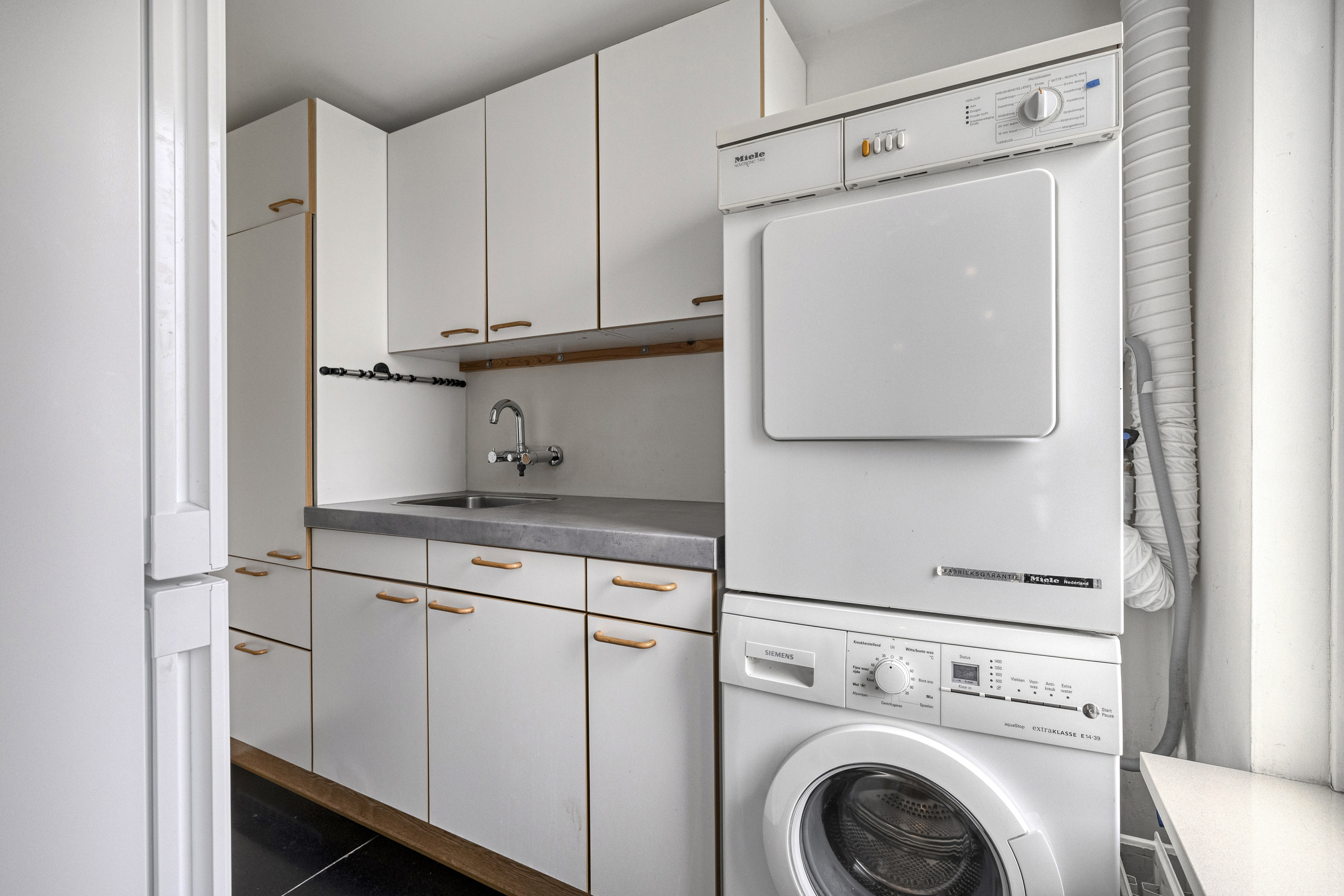 Deze ruimte was in het verleden ingericht als badkamer in combinatie met de slaapkamer. De woning is dus eenvoudig levensloopbestendig te maken. In combinatie met de multifunctionele ruimte ervoor is ook een beroep als schoonheidssalon, pedicure of anderszins goed denkbaar. Er is een keukenblok met koud- en warmwater aanwezig als ook de aansluitingen voor de wasmachine en droger.
