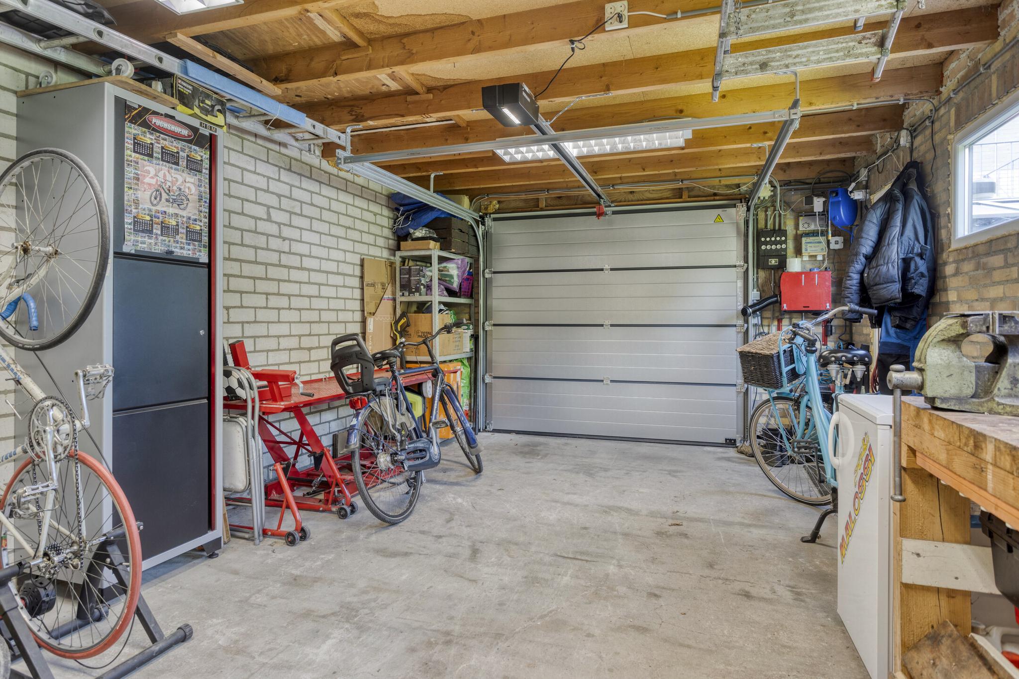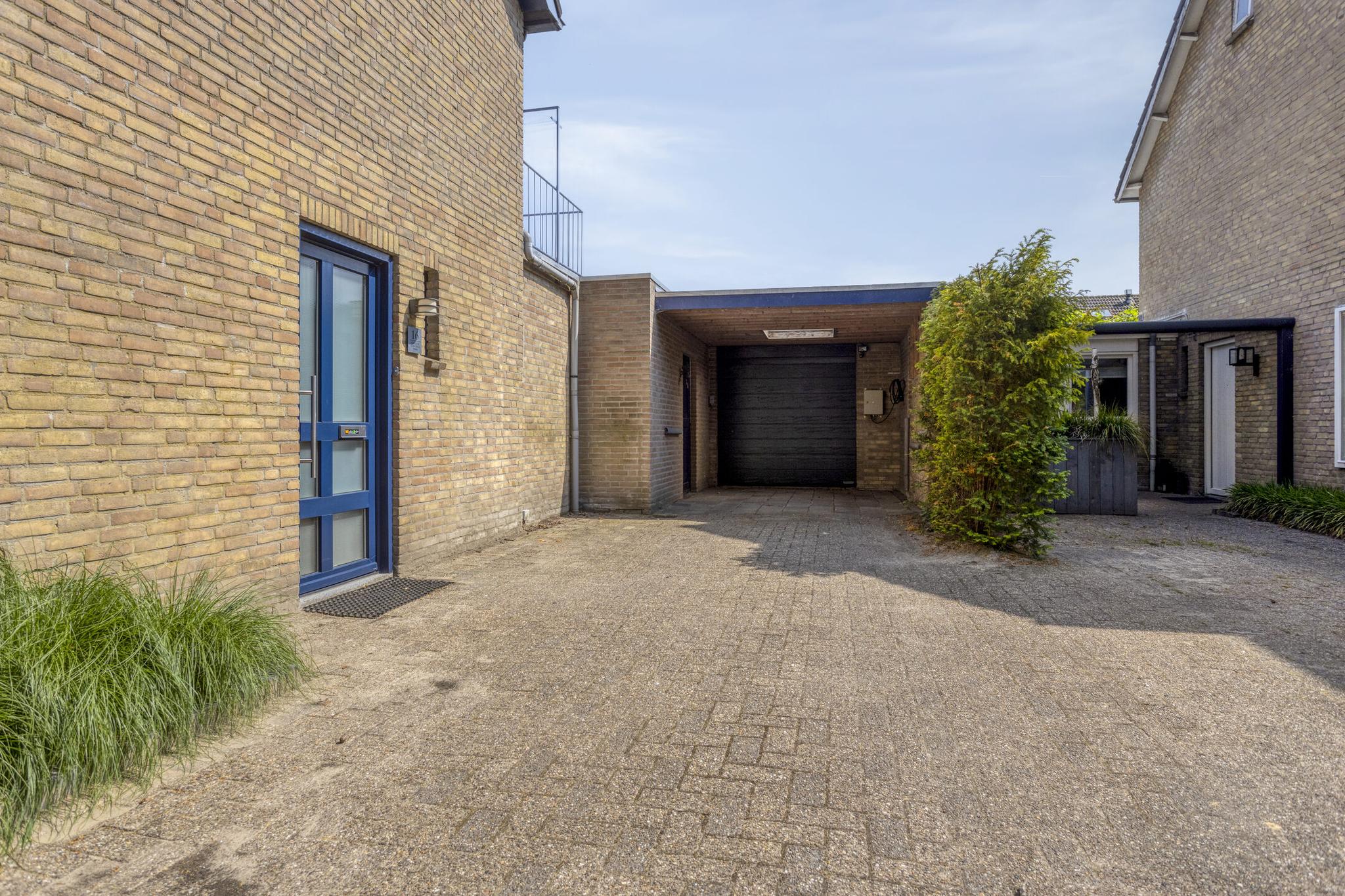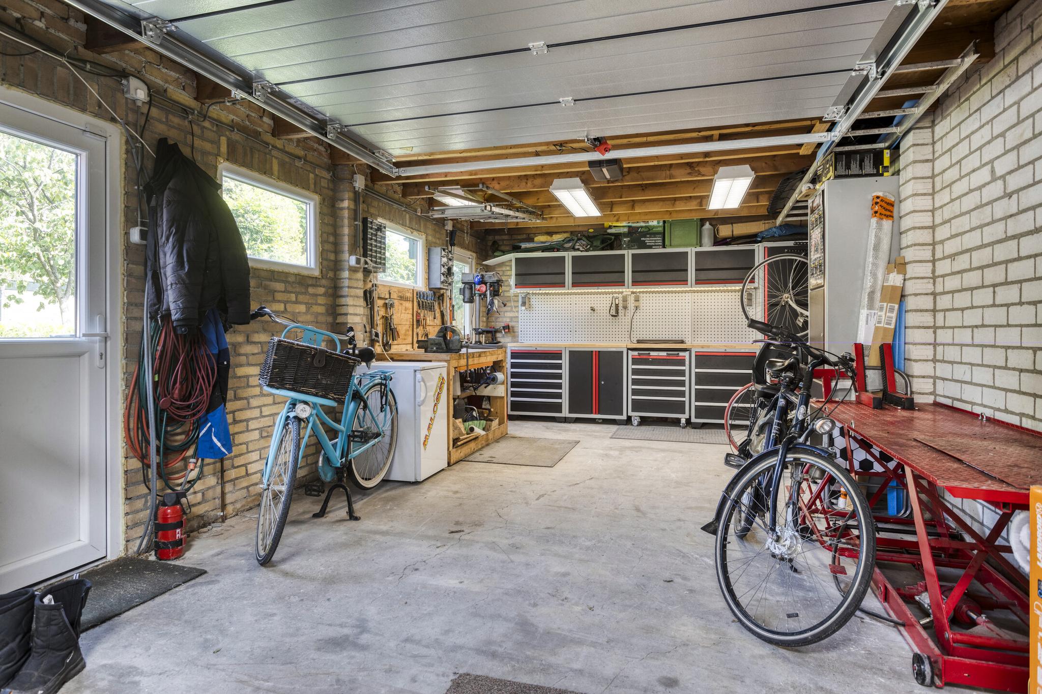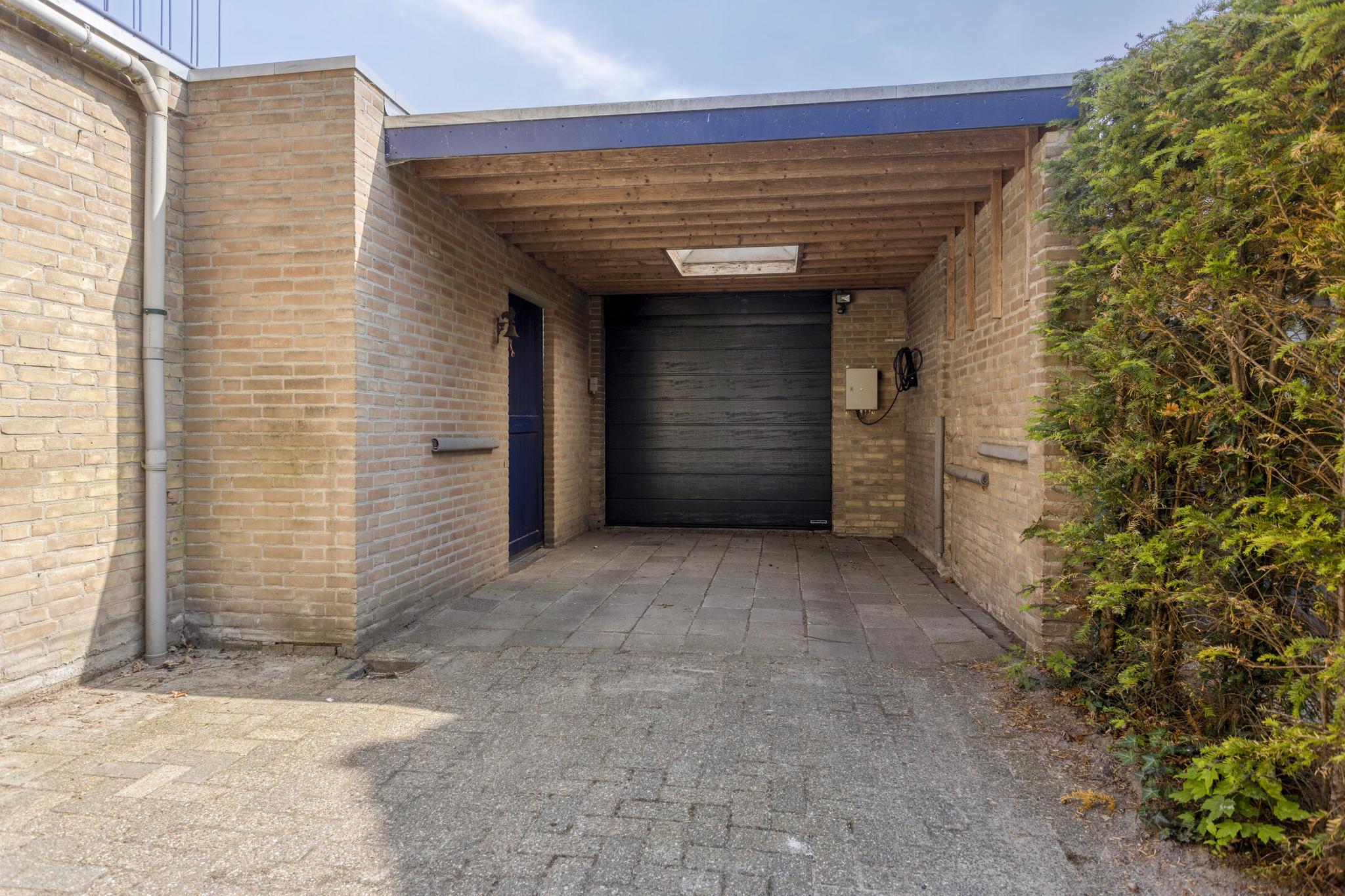 De voortuin heeft diverse planten en straatwerk en een semiverharding. Aan de zijkant is er een ruime oprit welke plaats biedt aan meerdere auto’s. Verder is er een carport waaronder de poort naar de achtertuin is gesitueerd. De garage heeft een afmeting van 3.88 x 6.63 m en is uitgerust met een elektrische bedienbare segmentdeur als ook 2 loopdeuren naar de tuin. De garage is voorzien van elektra, waaronder een krachtgroep. Achter de garage is er een eenvoudige overkapping voor het opbergen van tuinmaterialen. In de achtertuin zijn zogenaamde sproeipunten aanwezig voor de beregening. De aansluiting met verdeling blijft niet achter.