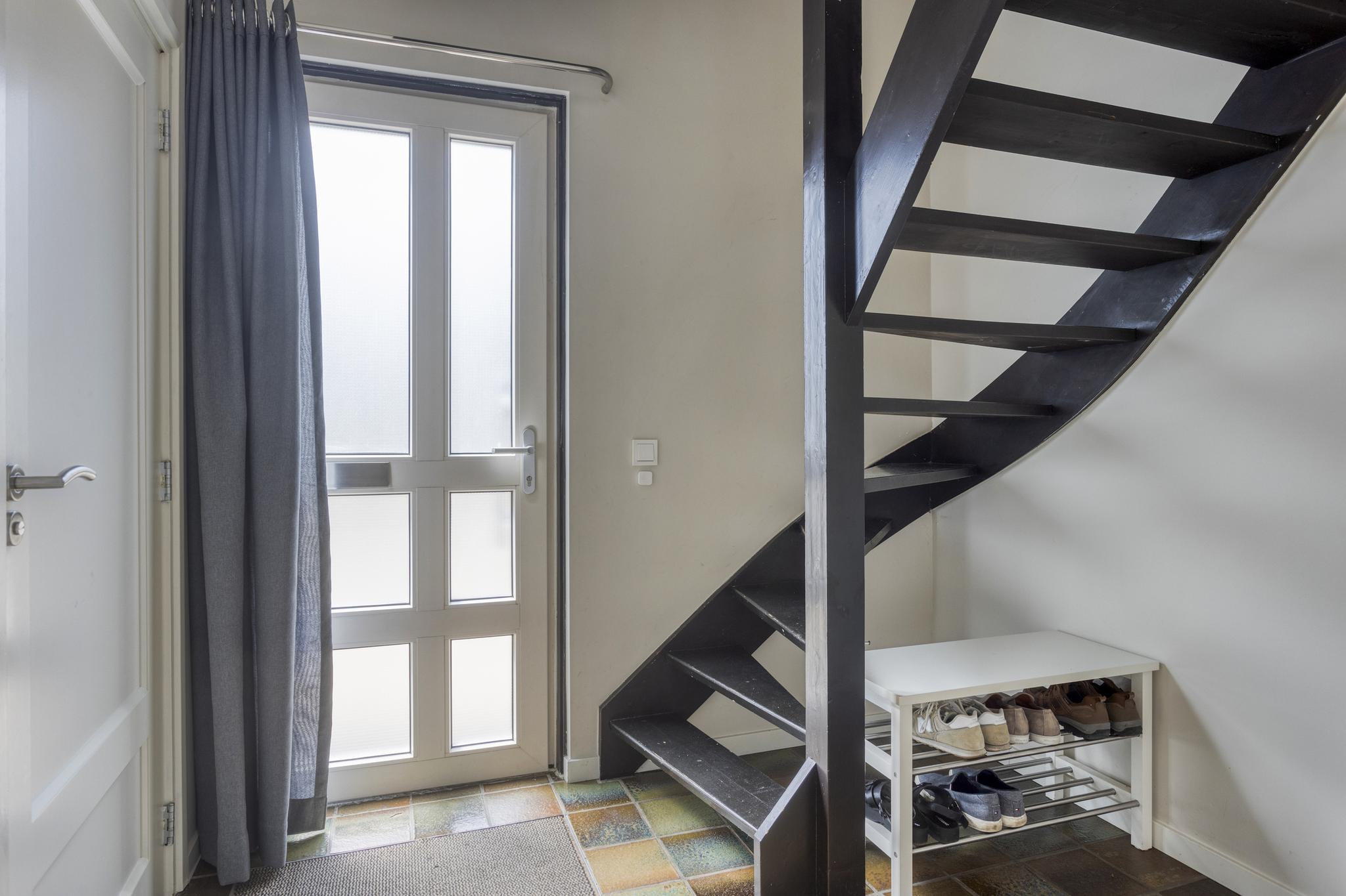 Via de entree aan de zijkant van de woning kom je in de hal die je toegang geeft tot de toiletruimte met closet en fontein, de meterkast (11 lichtgroepen en 1 kookgroep en 1 krachtgroep) en de trapopgang naar de 1e verdieping. Vanuit de hal ga je naar de woonkamer.