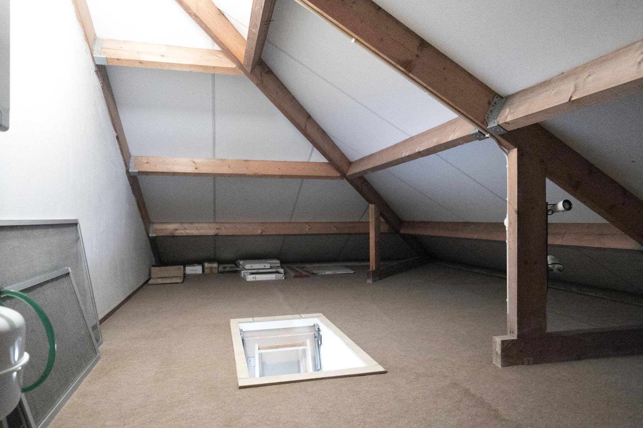 Via een vlizotrap op de overloop is de ruime bergzolder bereikbaar. Hier bevindt zich de opstelplaats van de Intergas c.v.-ketel (bouwjaar 2021). Met het plaatsen van een vaste trap kun je hier een extra (slaap)kamer realiseren.
