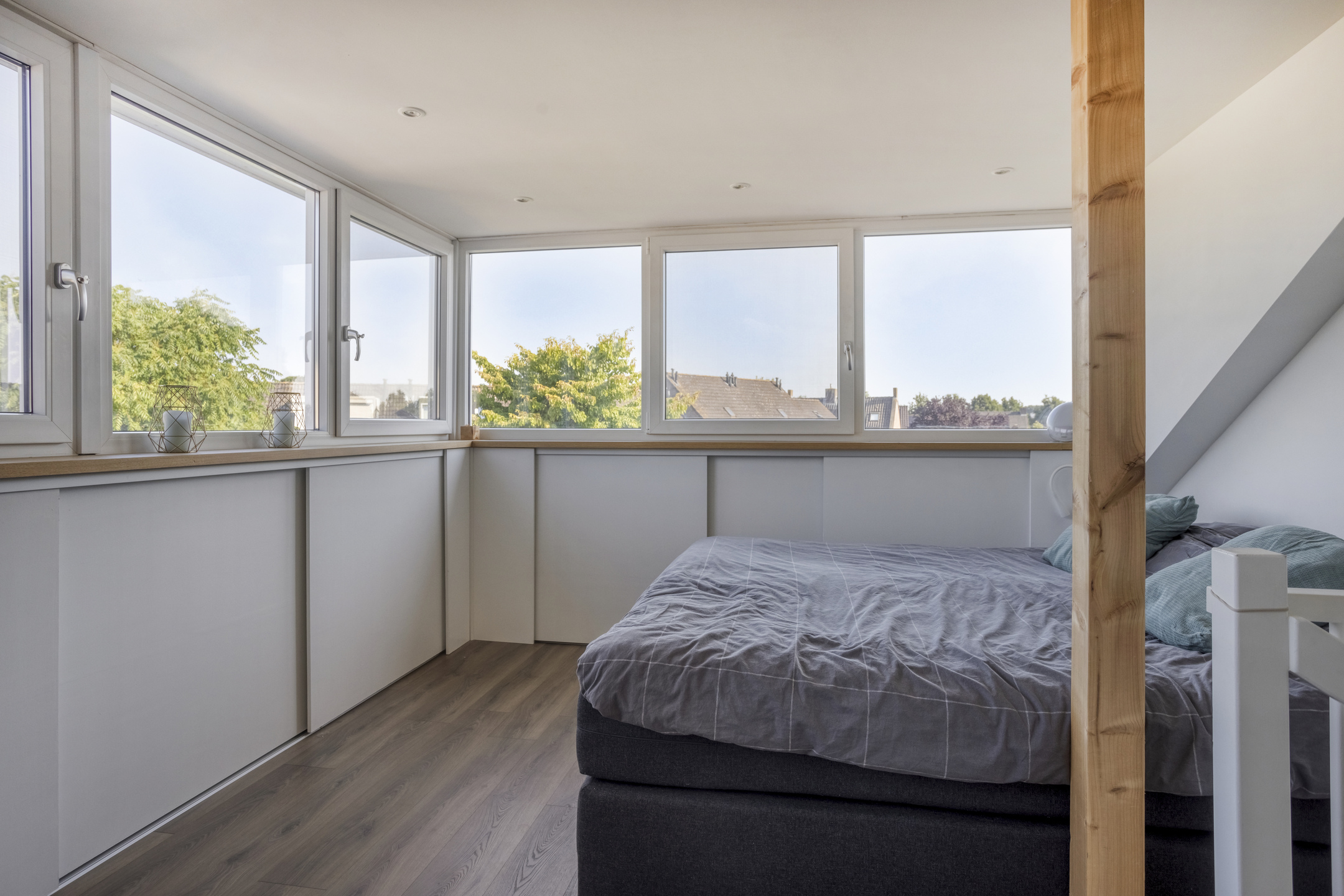 o Dankzij de hoekdakkapel op de tweede verdieping is er een volwaardige extra slaapkamer gerealiseerd.