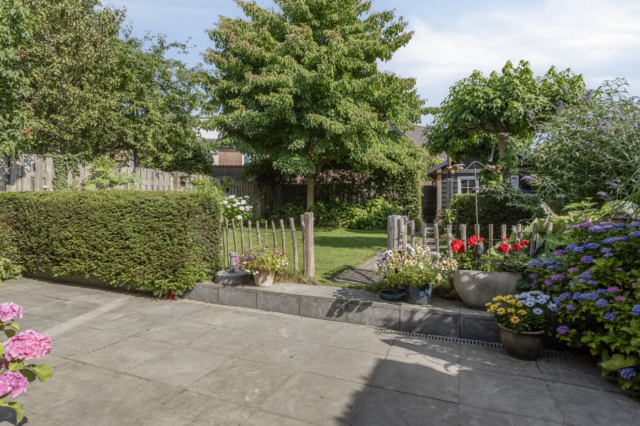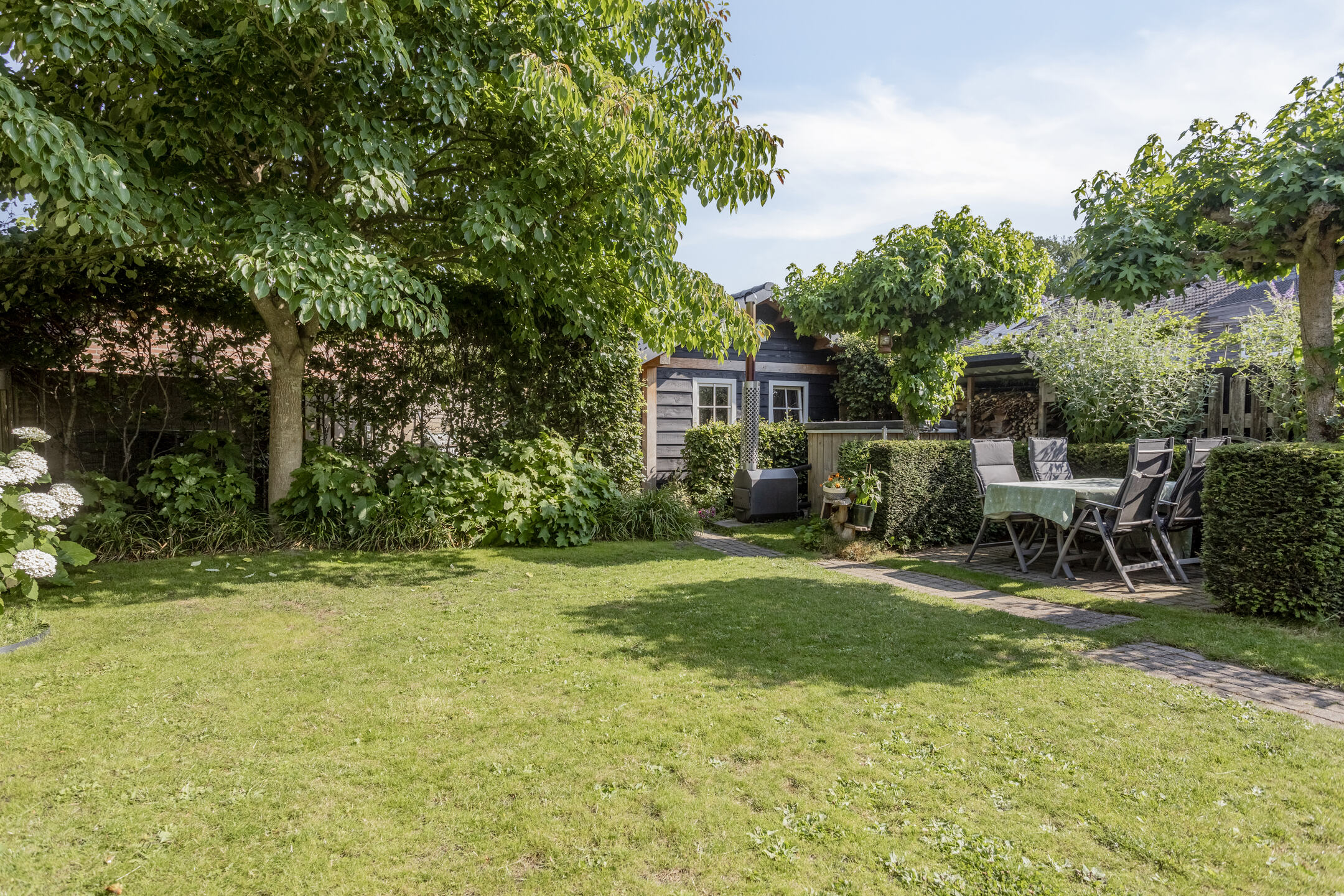 De fraai aangelegde tuin is met zorg ontworpen en biedt volop privacy, dankzij het ontbreken van directe inkijk van achterburen. Door de royale afmetingen en gunstige ligging kun je hier de hele dag genieten van zowel zon als schaduw. De tuin beschikt over meerdere terrassen – waaronder een sfeervol overdekt zitgedeelte – een verzorgd gazon, diverse bloemrijke borders, groene hagen en volwassen bomen. Achterin bevindt zich een houten berging met elektra, een praktische achterom én een hottub (ter overname), voor wie het buitenleven extra comfortabel wil maken.