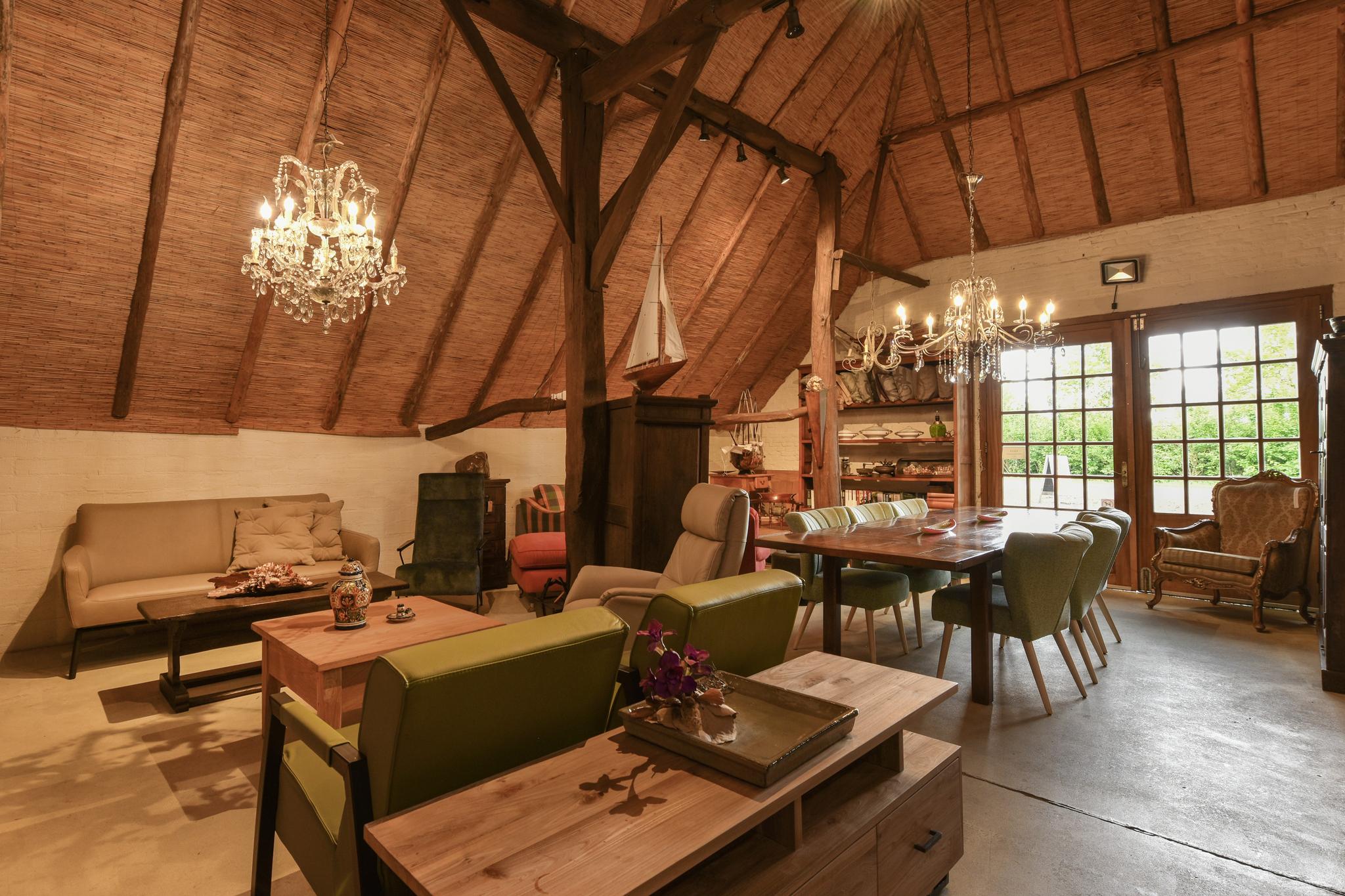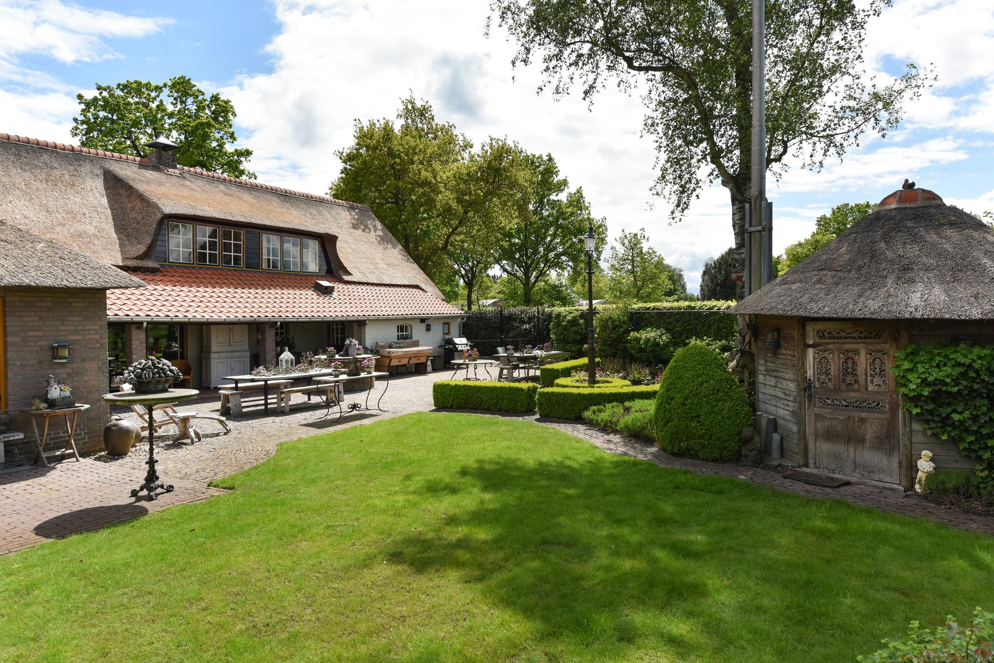 Het oude stalgedeelte, ‘den Deel’, biedt zicht tot de nok met authentieke balken en een open zolder voor extra bergruimte. Deze multifunctionele ruimte heeft openslaande deuren naar de oprit en een inpandige garage, beide zijn voorzien van vloerverwarming. Deze ruimte is bijvoorbeeld geschikt als aanleun/zorgwoning met een eigen toegangsdeur, d.m.v. de openslaande deuren aan de voorzijde. Er is een eigen achterom via een poort en pad naar de achtertuin.