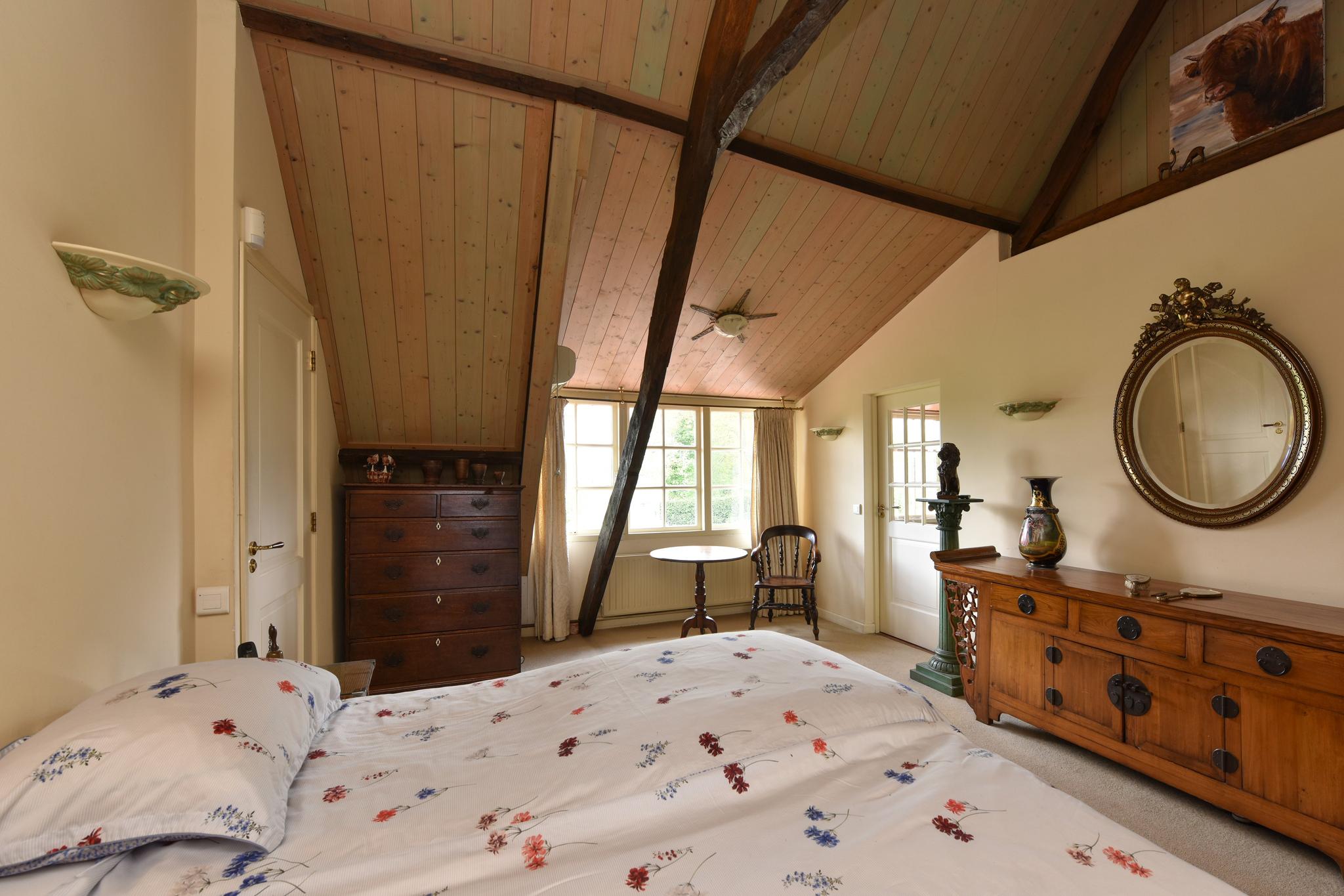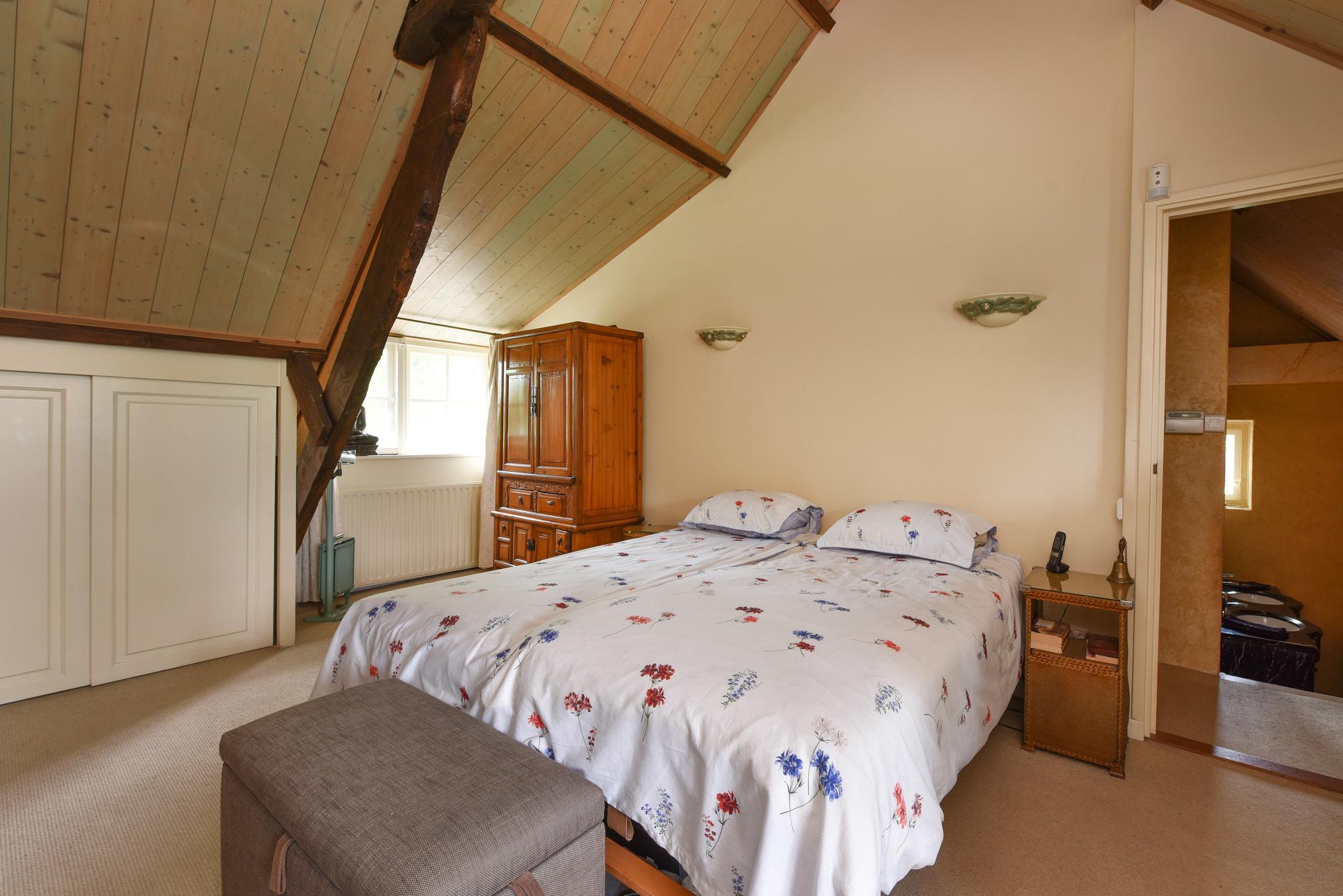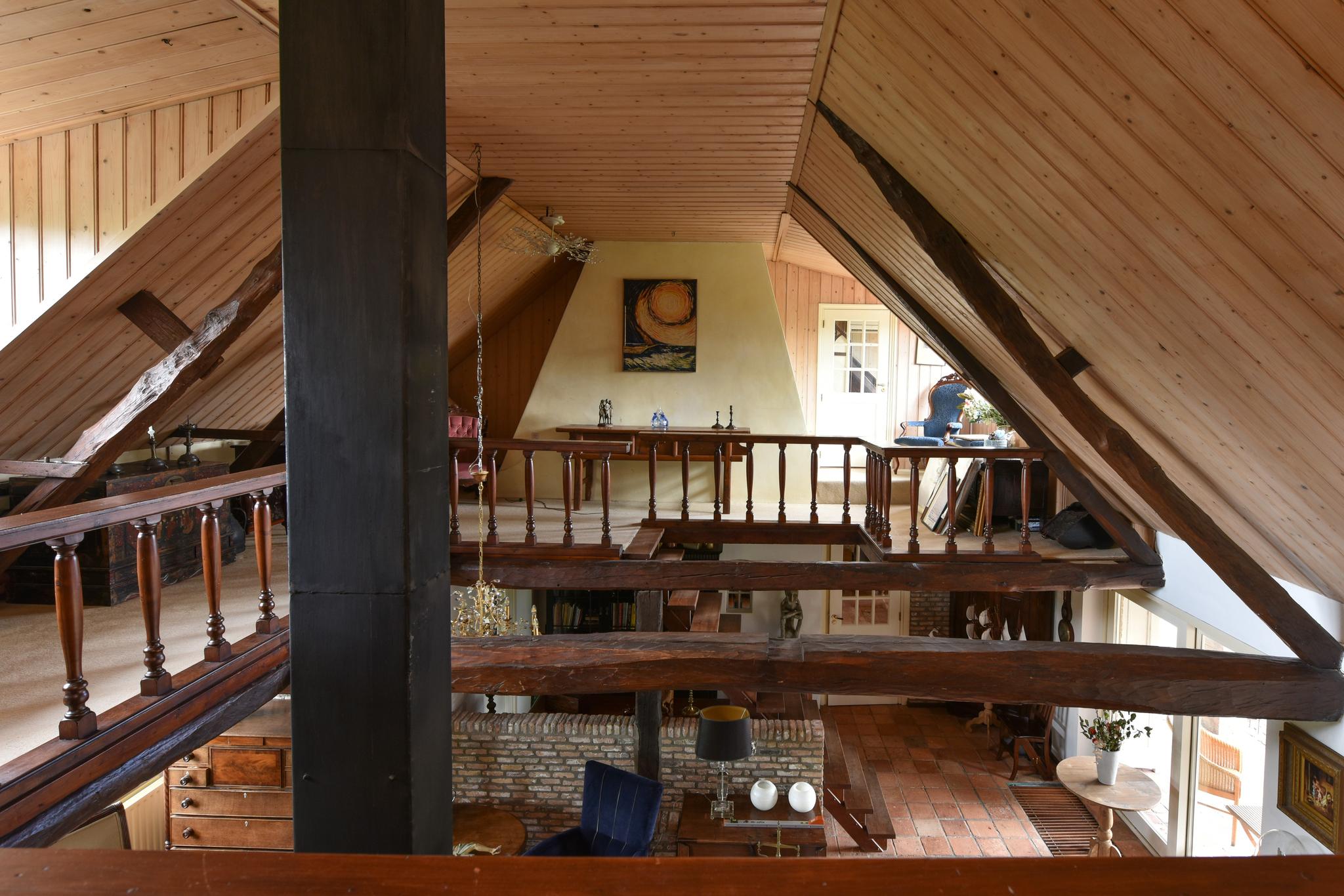 De verdieping van deze woonboerderij is zowel bereikbaar via een vaste trapopgang naar de vide vanuit de woonkamer als via een afgesloten trapopgang in de werk-/slaapkamer.
