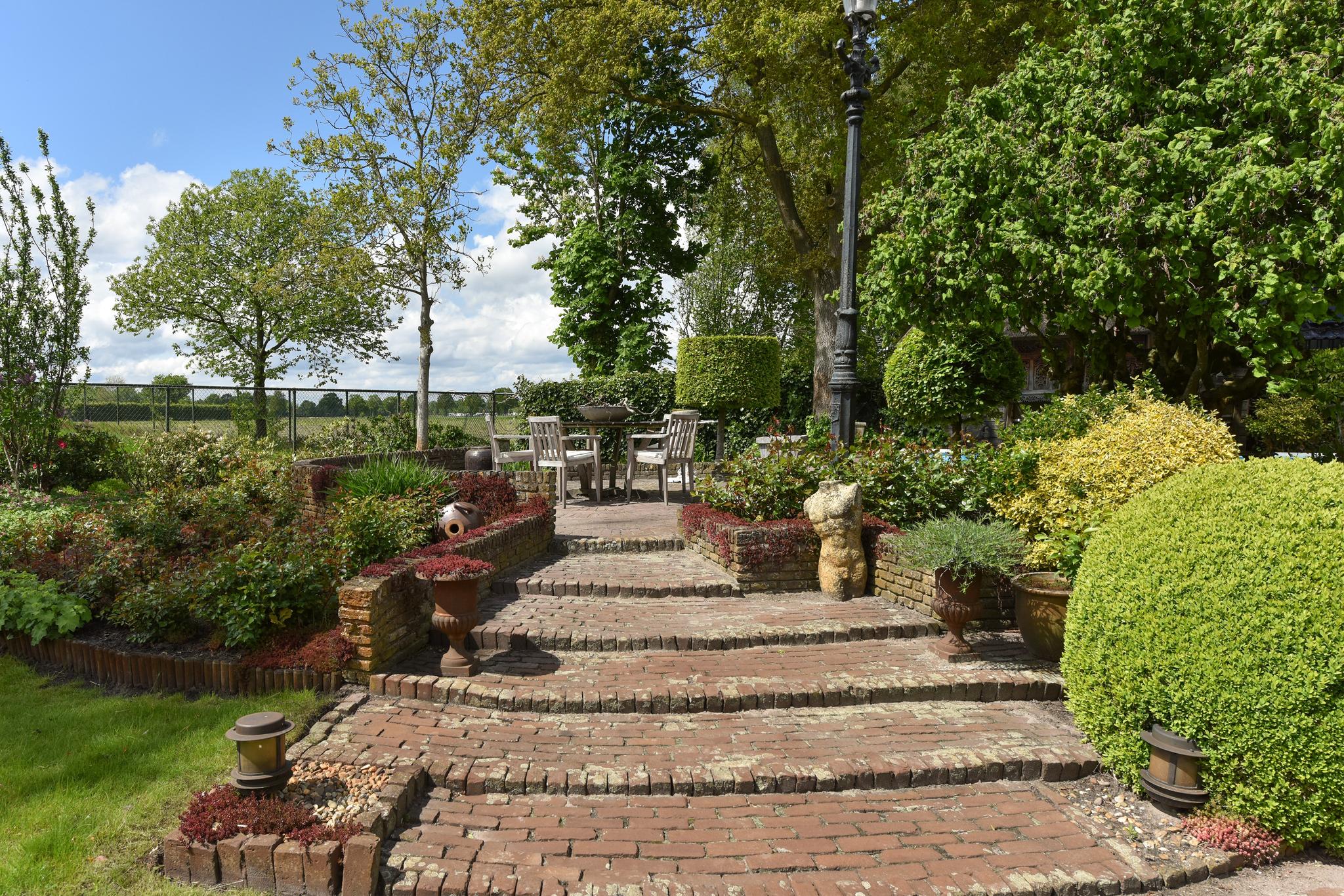 De onder architectuur aangelegde tuin geeft je een gevoel van vrijheid en ontspanning. Je vindt er fraaie beplanting, strategische geplaatste terrassen en een vijver. Het gazon en de praktische bergingen voegen zowel schoonheid als functionaliteit toe aan deze buitenruimte. Daarnaast kun je heerlijk ontspannen in het verwarmde zwembad, dat een luxe toevoeging vormt aan de tuin.