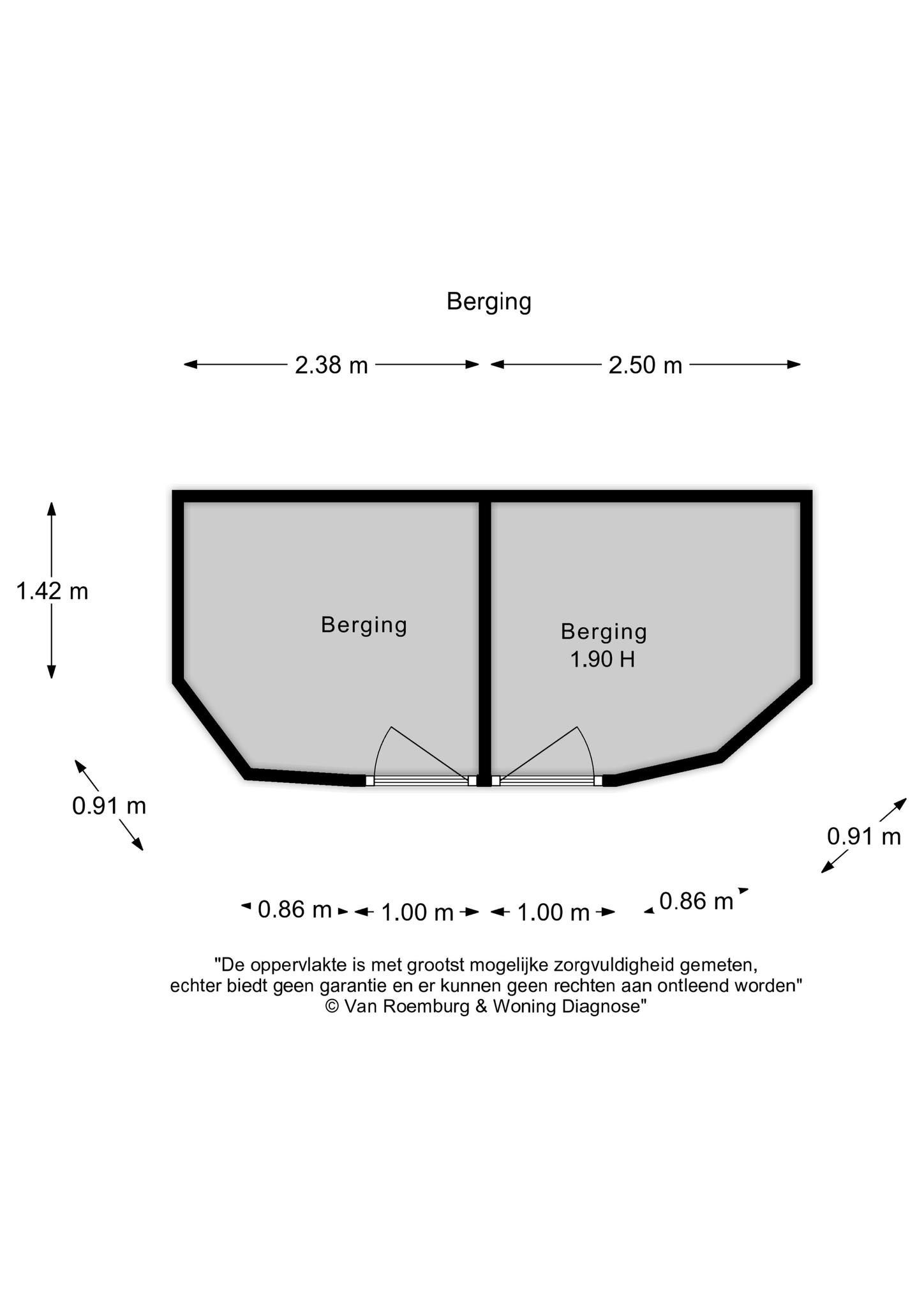 Deze woning is opgemeten conform de Meetinstructie. De Meetinstructie is gebaseerd op de NEN2580. De Meetinstructie is bedoeld om een meer eenduidige manier van meten toe te passen voor het geven van een indicatie van de gebruiksoppervlakte en inhoud. De Meetinstructie sluit verschillen in meetuitkomsten niet volledig uit, door bijvoorbeeld interpretatieverschillen, afrondingen of beperkingen bij het uitvoeren van de meting. Uitgangspunt blijft altijd; “wat je ziet is wat je koopt” en de objectinformatie is van lagere prioriteit.