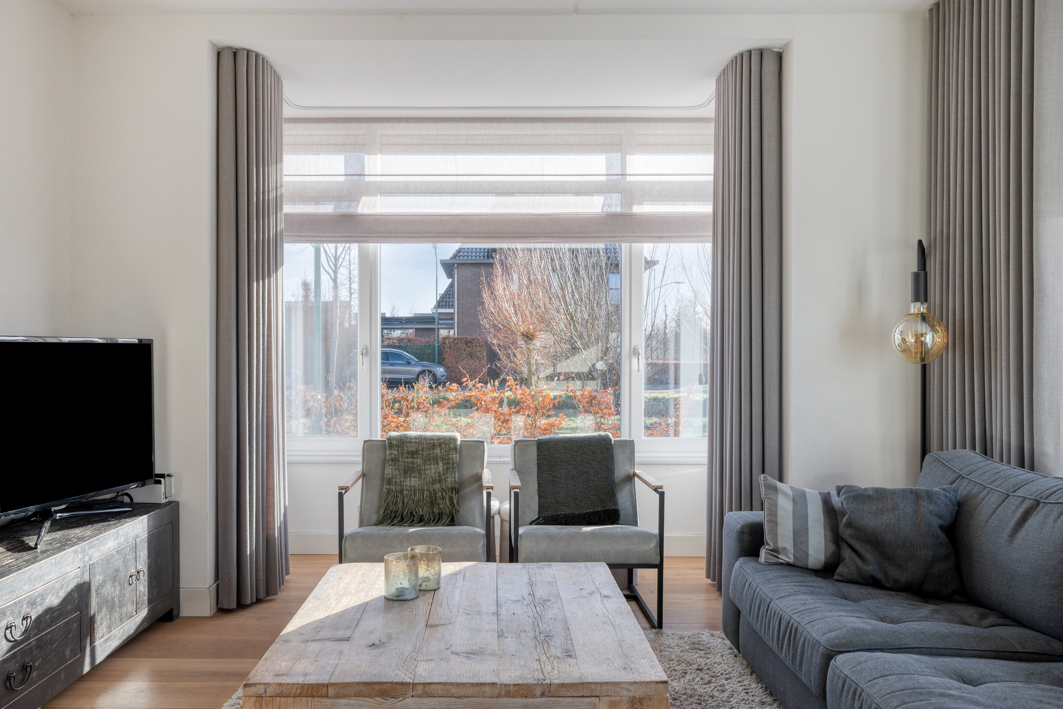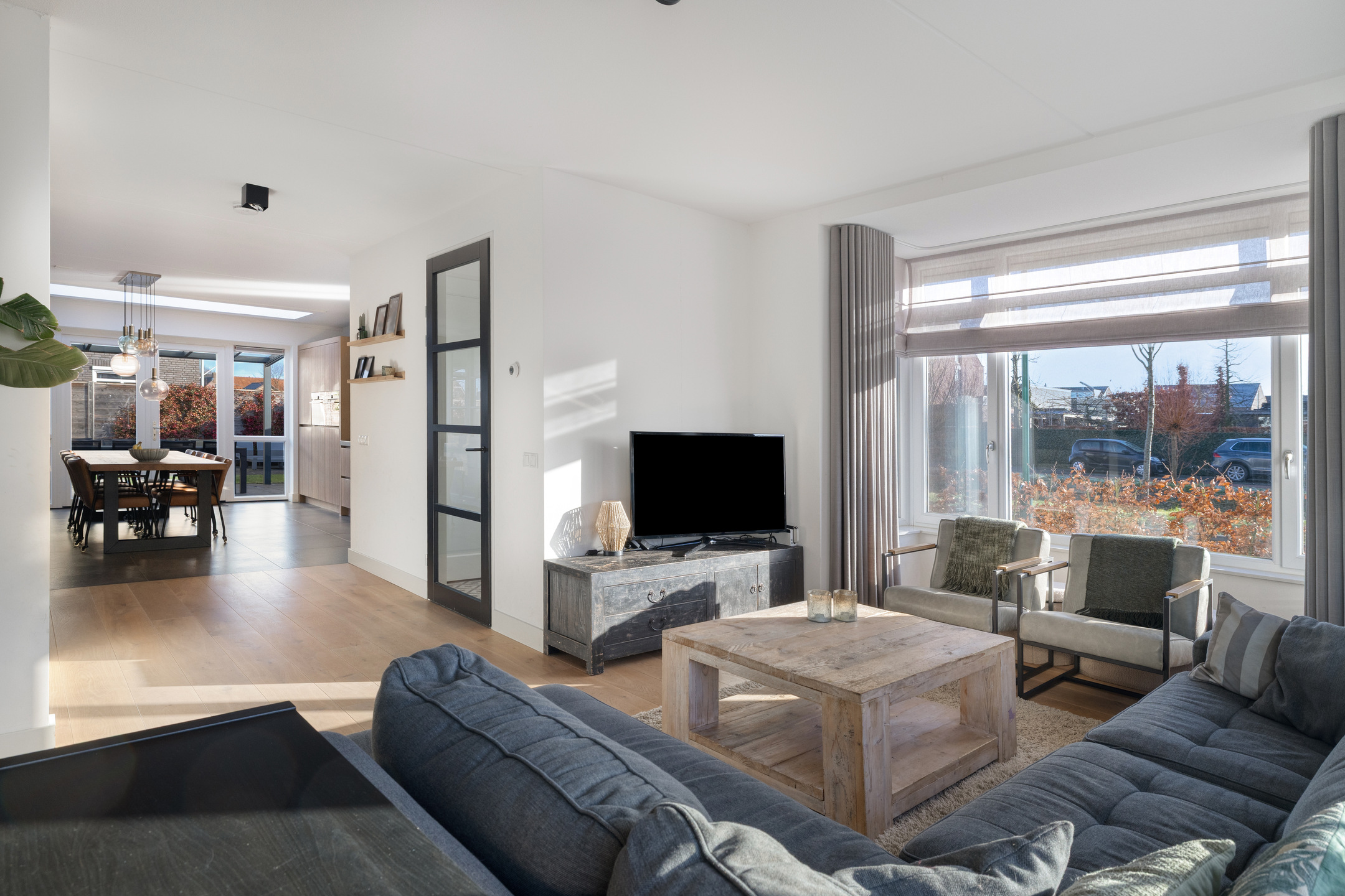 o Alle ramen in de woonkamer én de lichtstraat in de keuken zijn voorzien van screens.