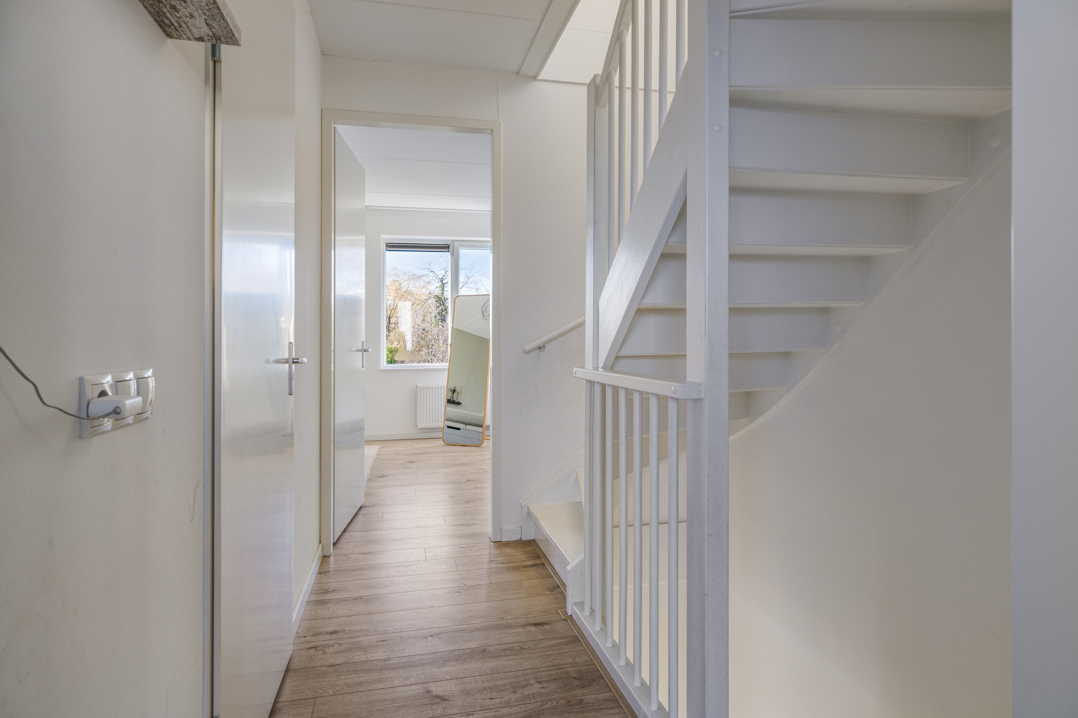 De vloeren op de 2e verdieping zijn voorzien van laminaat.