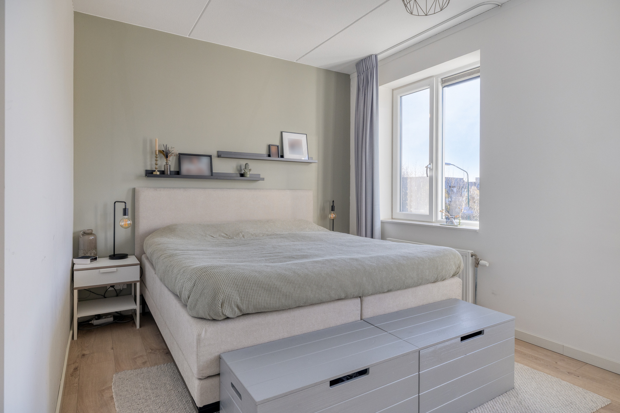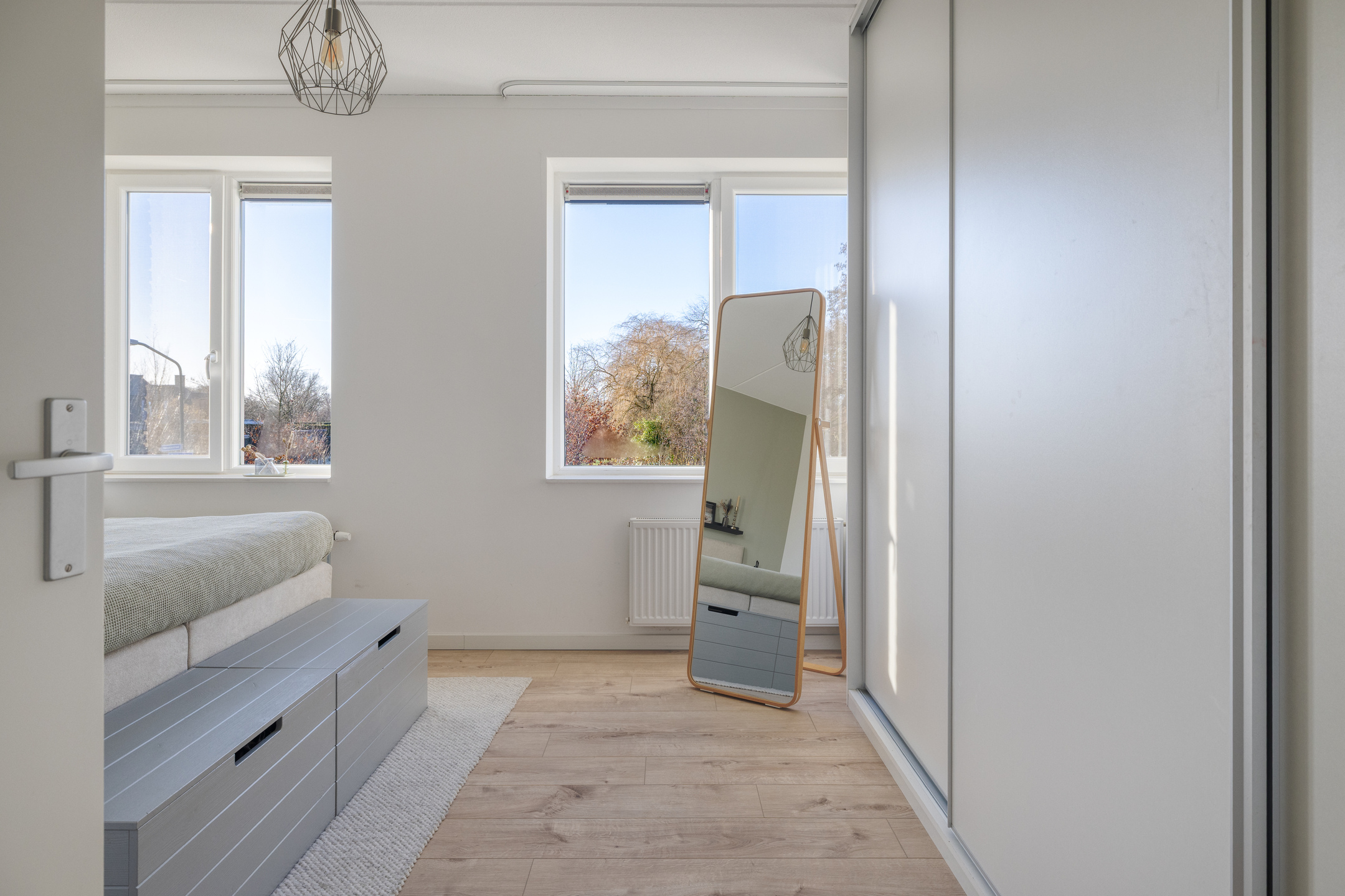 Aan de achterzijde is de tweede slaapkamer gesitueerd. Deze heeft een afmeting van ca. 2.94 x 4.81 m. Ook hier zijn twee grote ramen aanwezig voorzien van een draai-kiepsysteem en ventilatierooster. Vanaf hier heb je uitzicht op de achtertuin.