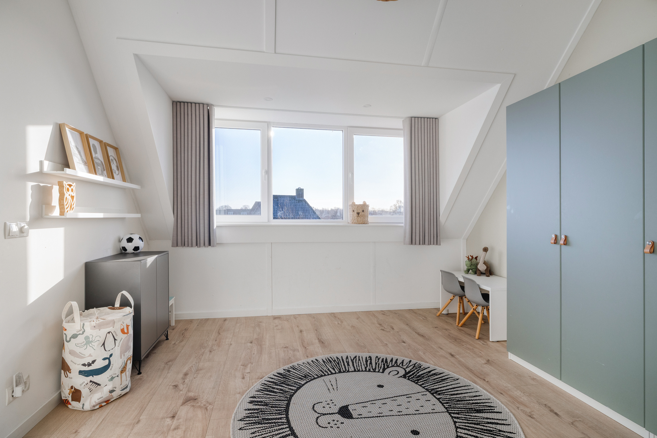 Aan de voorzijde is de derde slaapkamer. Deze heeft een dakkapel (voorzien van een rolluik), wat de kamer ruim en licht maakt. Deze kamer is voorzien van een airco.