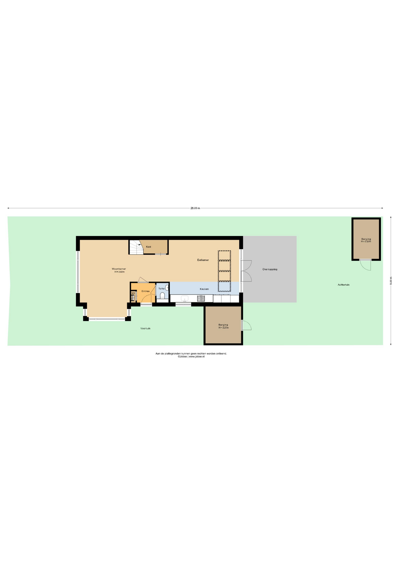 Achter in de tuin staat er een houten berging met een afmeting van ca. 1.97 x 3.03 m. Aan de zijkant van de woning is er een tweede houten berging (2022) met een afmeting van ca. 2.74 x 2.84 m.