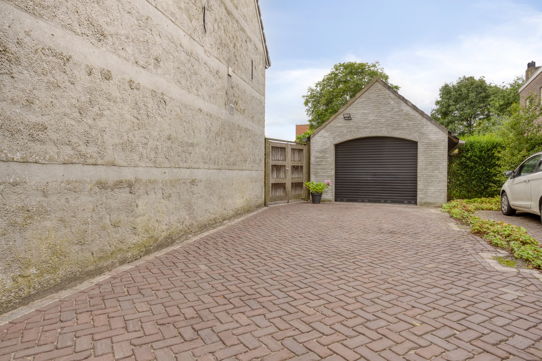 De woning is gelegen op een ruim perceel van ca. 585 m². Rechts van de woning staat de vrijstaande garage met berging. Voor de garage is een brede bestrate oprit welke parkeerruimte biedt voor meerdere auto’s. De garage heeft een afmeting van ca. 3.93 x 4.84 m met hierachter een berging van 3.93 x 4.79 m. Het is een lichtgewichtwand tussen de garage en berging en kan dus eenvoudig verwijderd of verplaatst worden, zodat er een grote ruimte van ca. 9.63 m ontstaat. De garage/berging is voorzien van elektra en water.