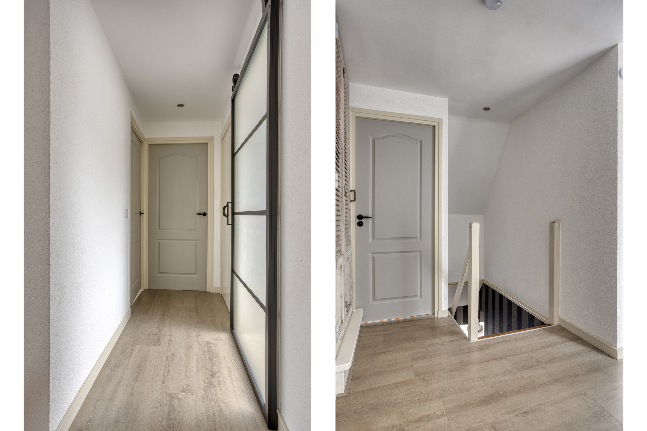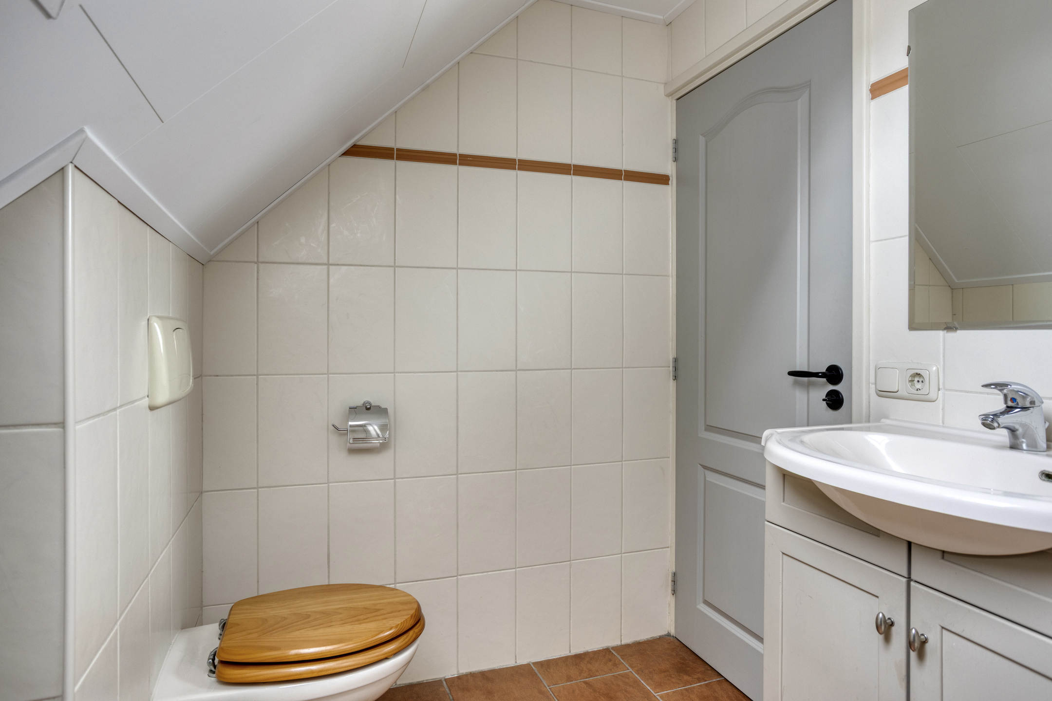 Via de vaste trap tussen de keuken en bijkeuken ga je naar de 1e verdieping. Vanuit de overloop zijn vier slaapkamers en een badkamer met toilet te bereiken. Er zijn drie slaapkamers aan de voorzijde van de woning gelegen en een aan de achterkant. Op de overloop is er een kast voor extra bergruimte.