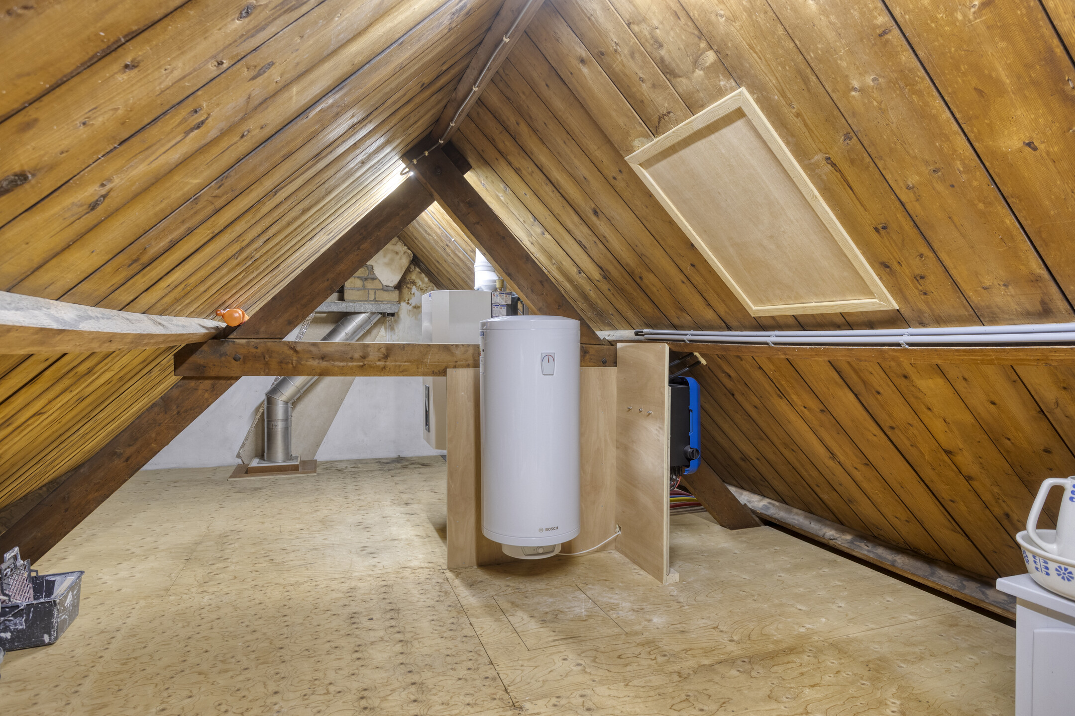 Via de vaste trap op de 1e verdieping ga je naar de bergzolder. Hier is de Daalderop Combifort 30/ 50+ CV (2009) ketel opgesteld, als ook een elektrische boiler, Nefit- Bosch Tronic 4000 T boiler Elektrisch 120 liter (2022). De elektrische boiler in combinatie met de 15 zonnepanelen is dit gunstig voor het energieverbruik.