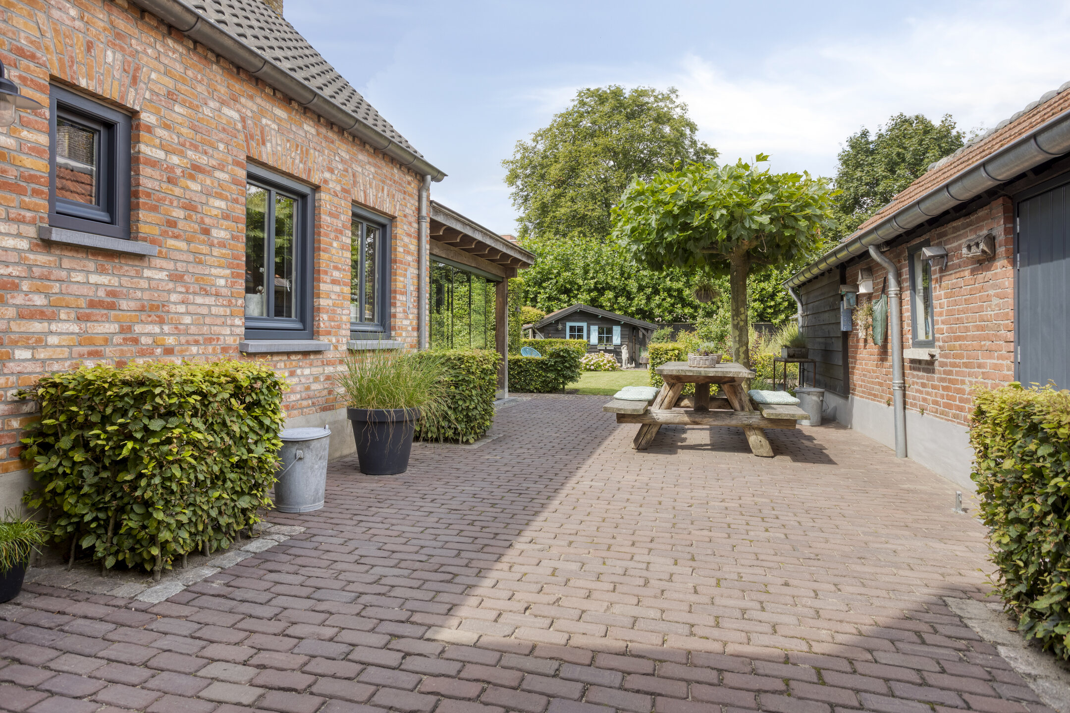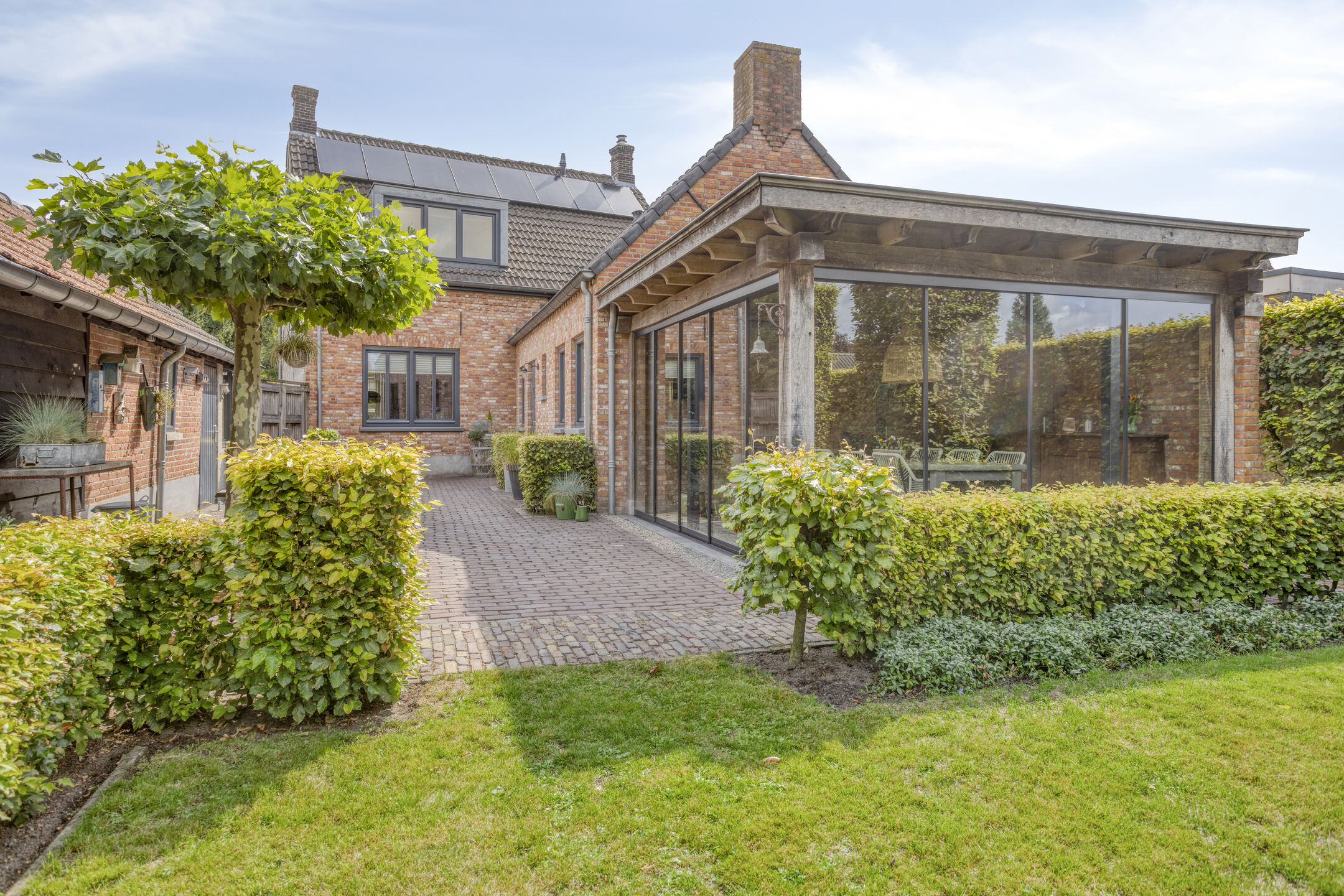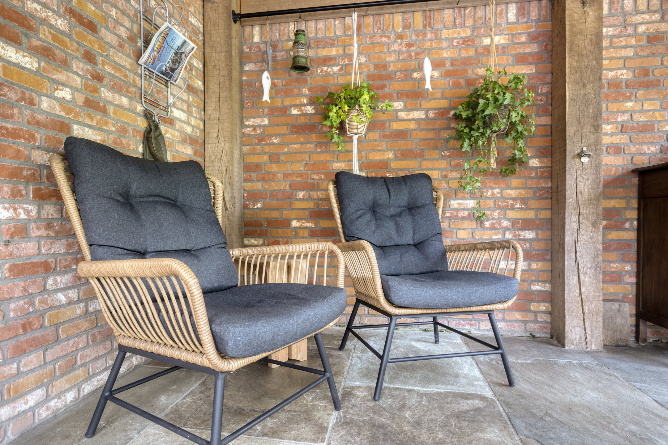 Achter de woning is de tuinkamer gelegen. Een heerlijke ruimte welke volledig is af te sluiten met een glazenschuifwand. De grote tegels in combinatie met het schoonmetselwerk en houten plafond maken het een heerlijke ruimte om met familie en vrienden te verblijven. Ook de openhaard draagt daar natuurlijk aan bij. Verder is deze ruimte voorzien van verlichting en elektra. Door de grote raampartijen hebben je een fantastisch zicht op de tuin.